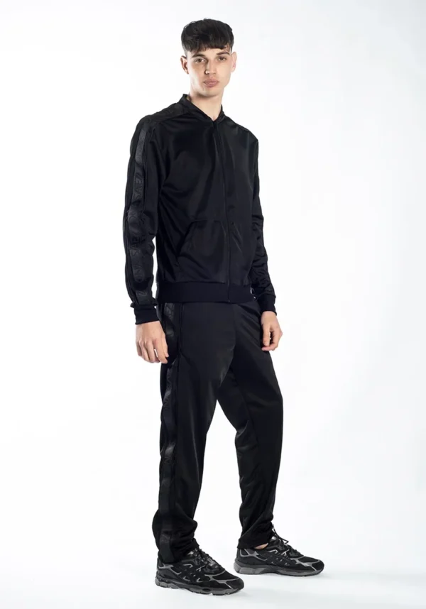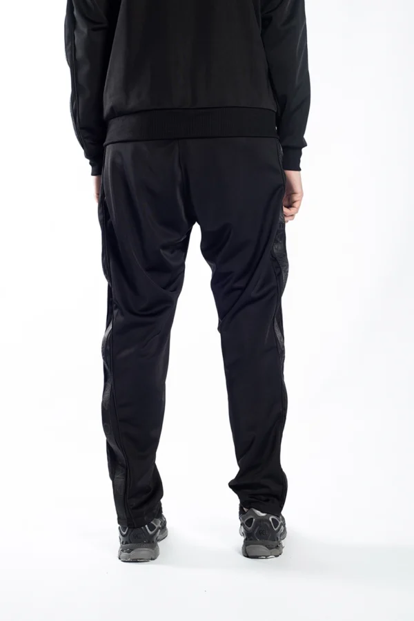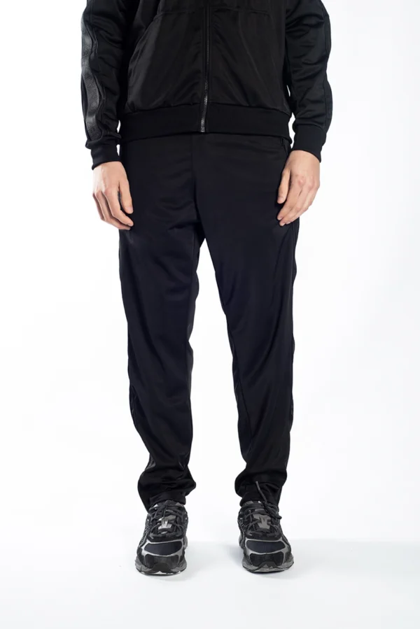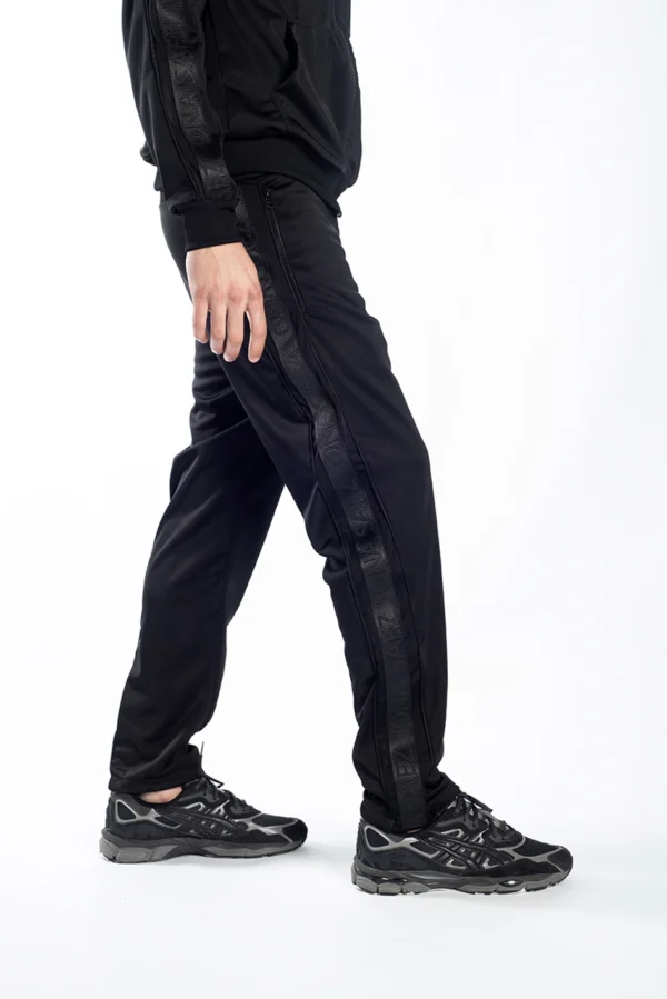 Pantalón recto confeccionado en jersey deportivo semi brillante, un diseño moderno con tiras en los laterales bordadas con logo de marca a tono, que añaden un toque distintivo y elegante.