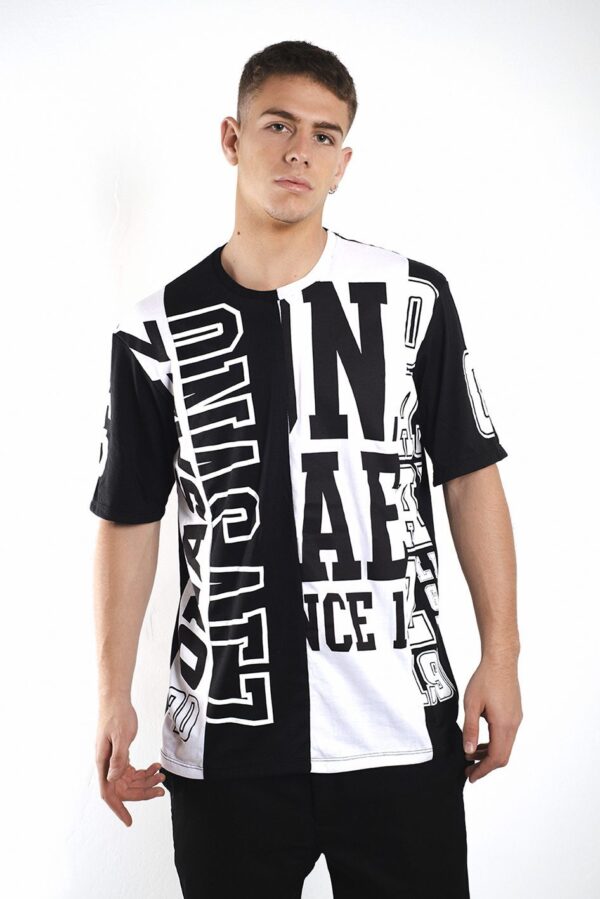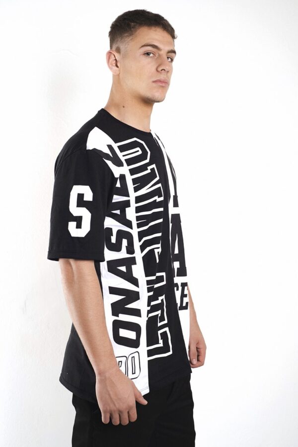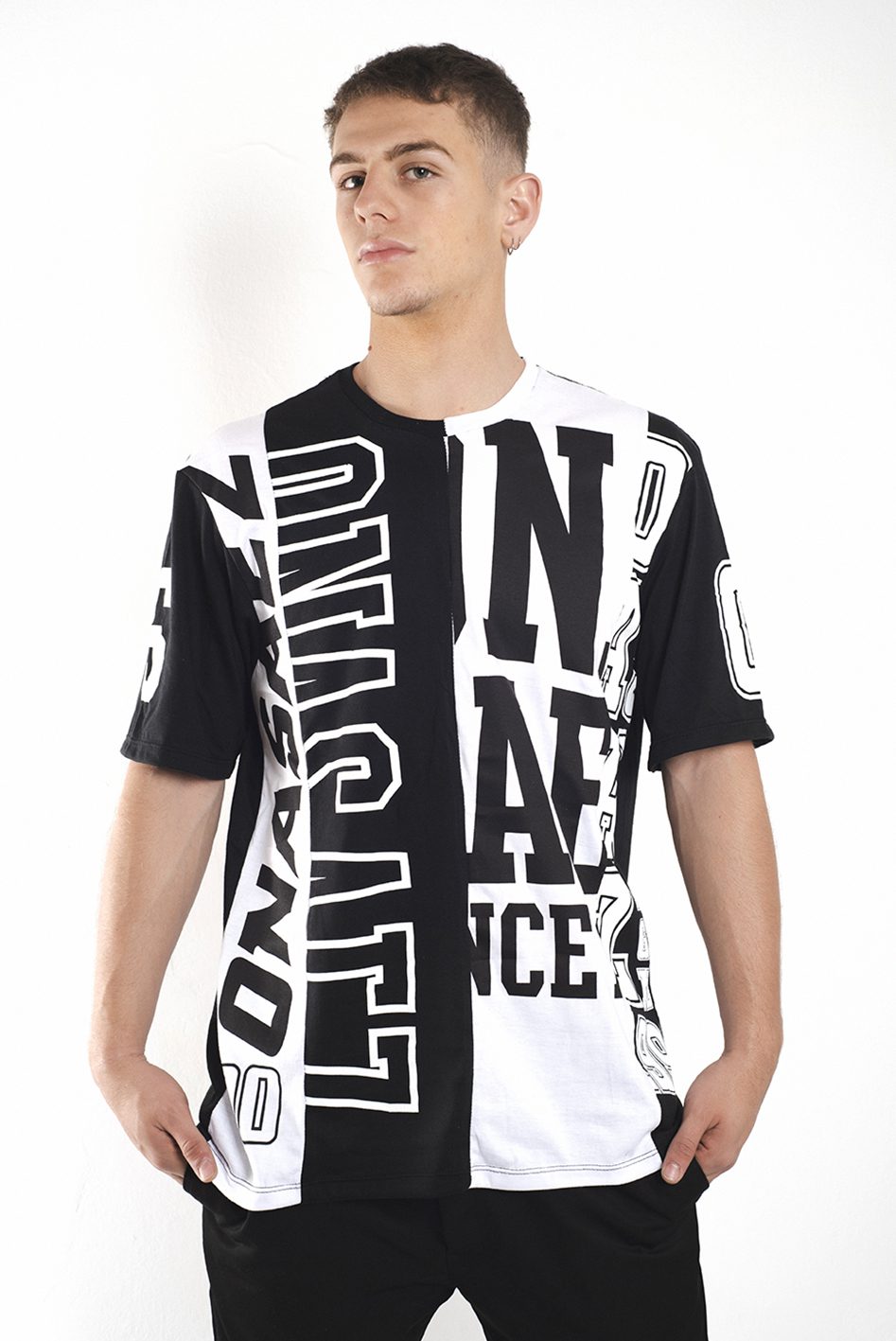 Full estampa a contra tono centralizada en el frente, y delantera unida con recortes.