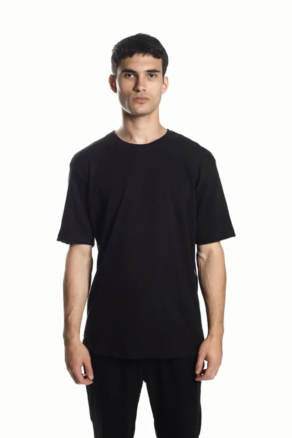 Remera cuello redondo y manga corta de calce regular, confeccionada 100% en algodón flame grueso 20/1.