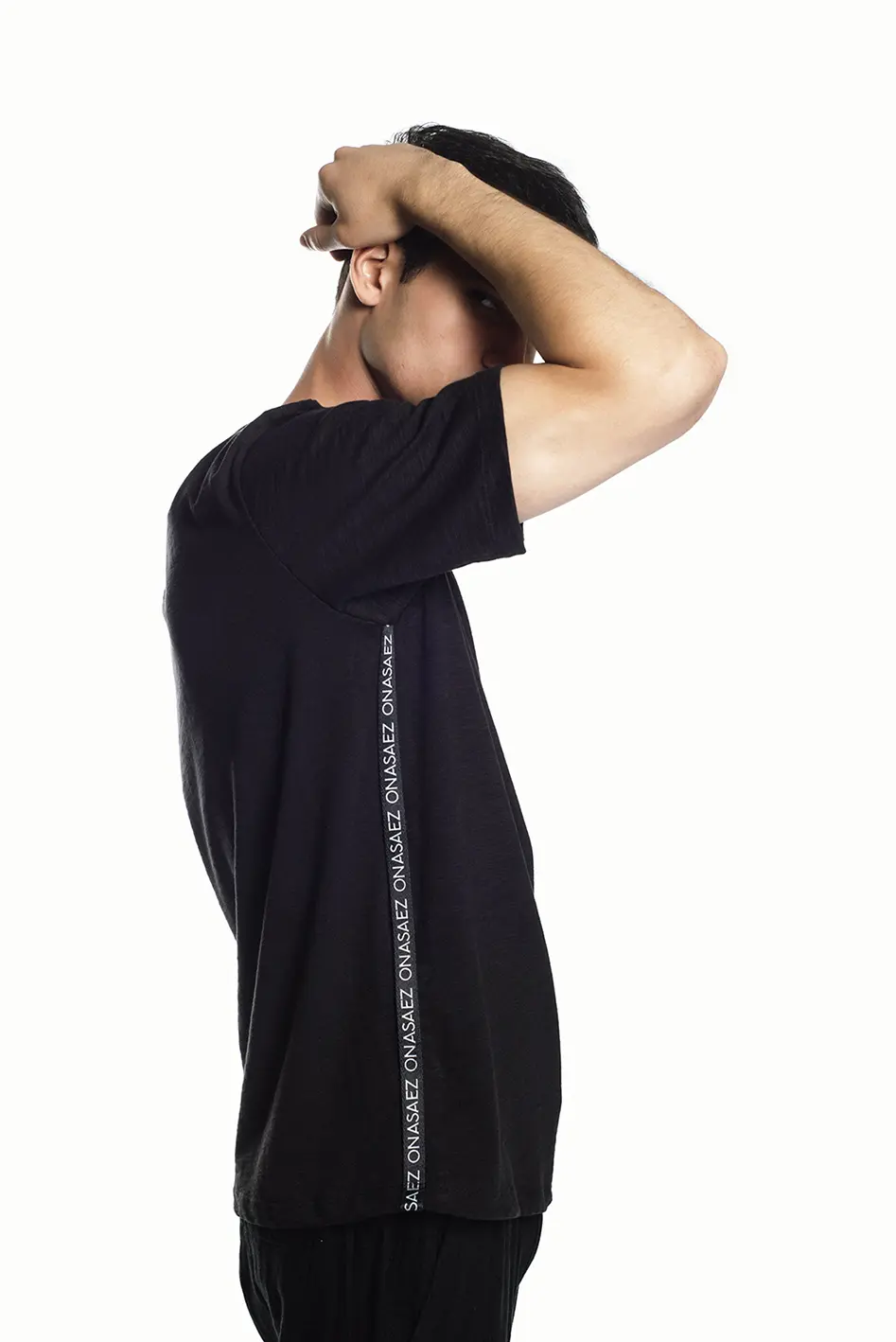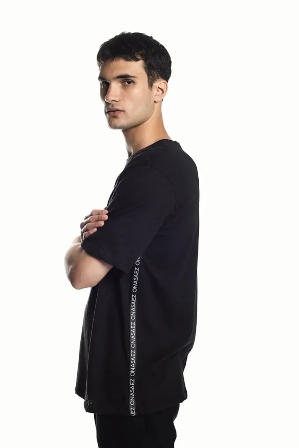 Detalle de cinta de marca bordada a contra tono a los costados, una opción ideal para un look urbano o casual, fácil de combinar con jeans, bermudas o pantalones deportivos.