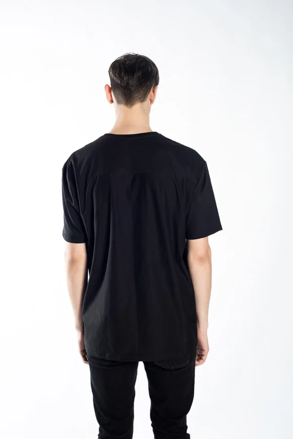Remera relaxed fit, cuello redondo y manga corta, confeccionada en algodón 16/1, de un grosor alto, lo que significa que es lo suficientemente resistente como para ofrecer durabilidad, pero al mismo tiempo es suave al tacto.