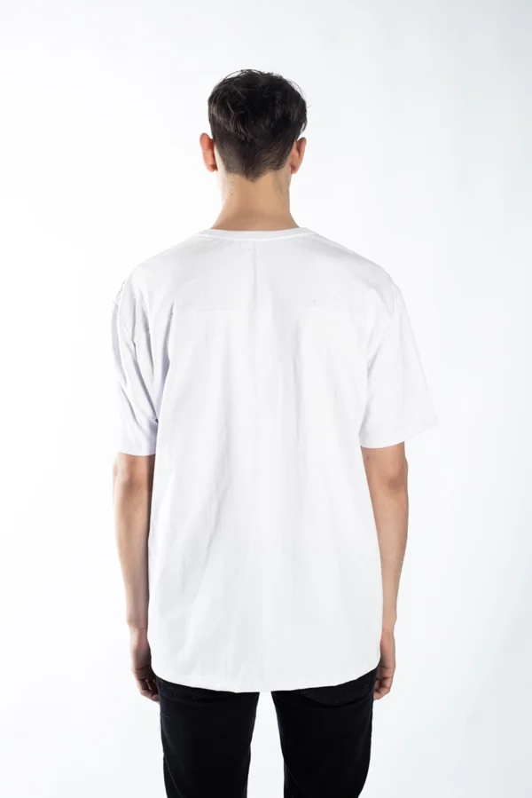 Remera relaxed fit, cuello redondo y manga corta, confeccionada en algodón 16/1, de un grosor alto, lo que significa que es lo suficientemente resistente como para ofrecer durabilidad, pero al mismo tiempo es suave al tacto.