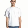Remera relaxed fit, cuello redondo y manga corta, confeccionada en algodón flame peruano, de un grosor alto, lo que significa que es lo suficientemente resistente como para ofrecer durabilidad, pero al mismo tiempo es suave al tacto.