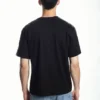 Remera relaxed fit, cuello redondo y manga corta, confeccionada en algodón flame peruano, de un grosor alto, lo que significa que es lo suficientemente resistente como para ofrecer durabilidad, pero al mismo tiempo es suave al tacto.