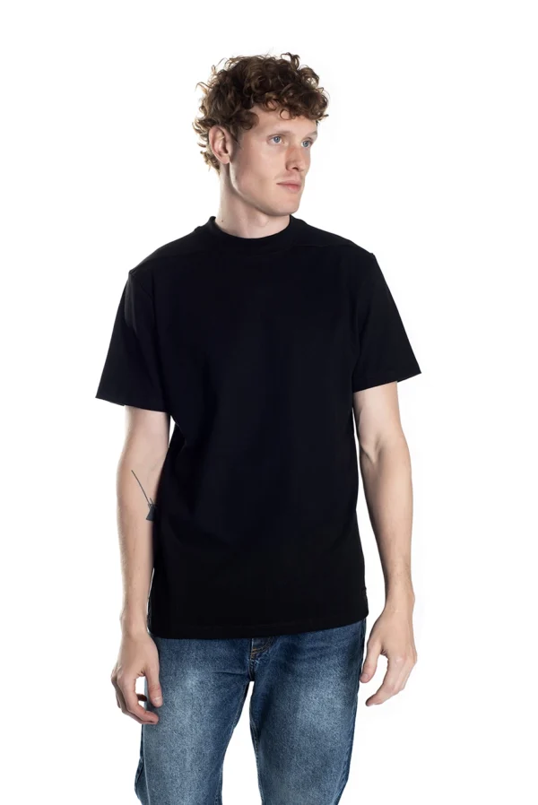 Remera regular fit, cuello redondo y manga corta, confeccionada en algodón 16/1, de un grosor alto, lo que significa que es lo suficientemente resistente como para ofrecer durabilidad, pero al mismo tiempo es suave al tacto.