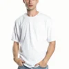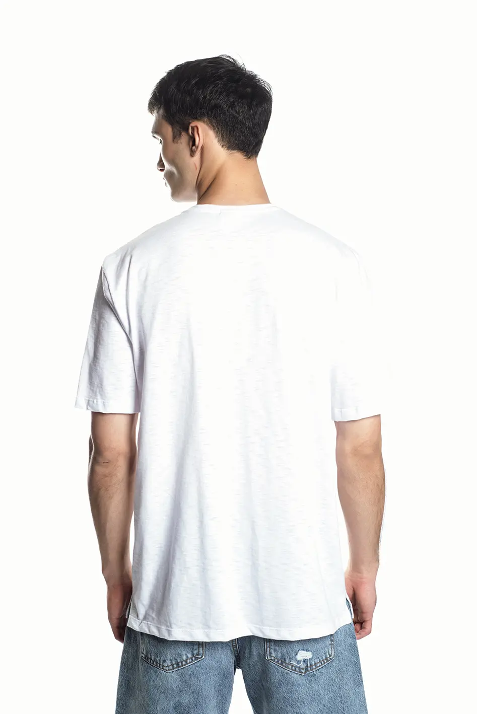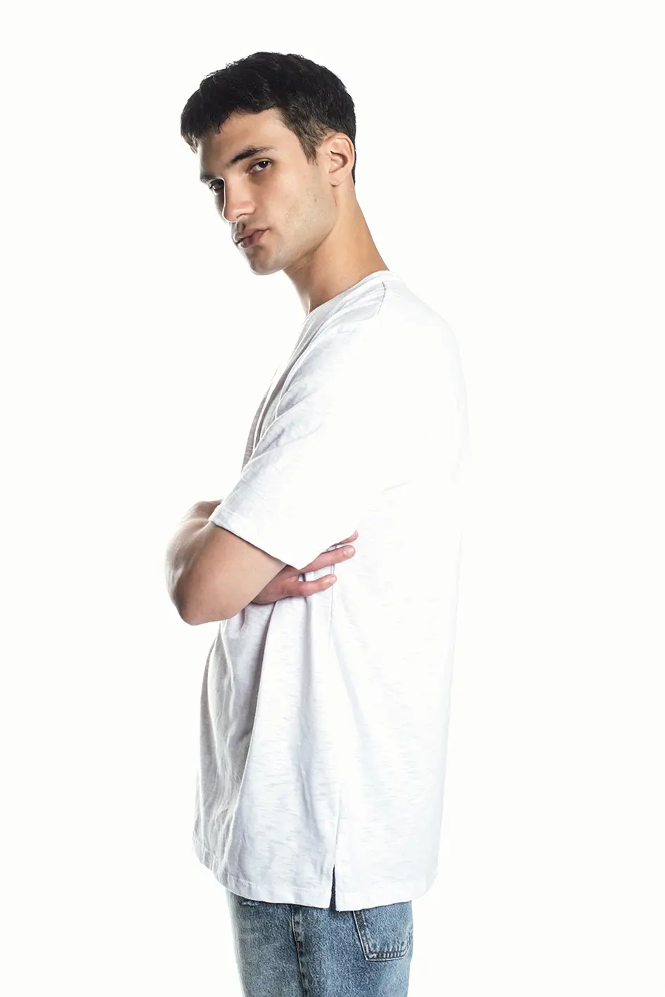 Remera cuello redondo y manga corta de calce regular, confeccionada 100% en algodón flame grueso 20/1.