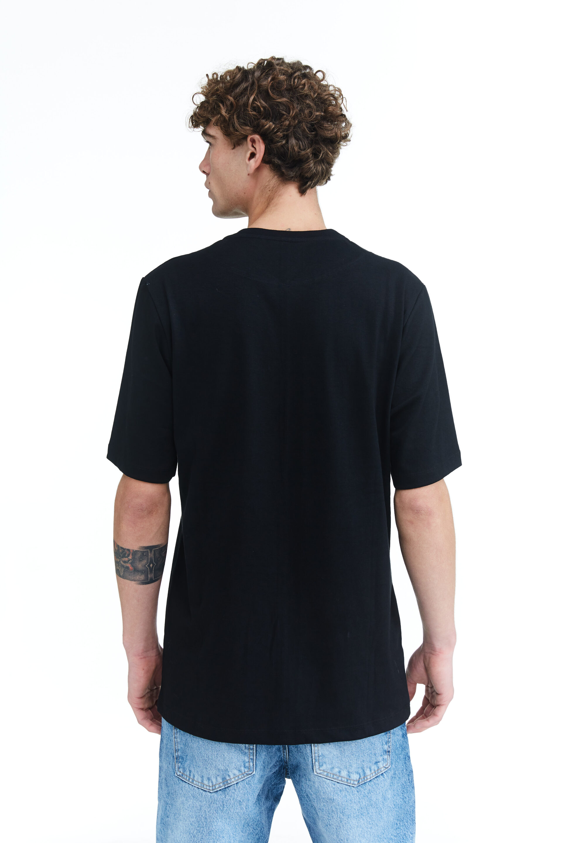 Remera negra de corte oversize, diseñada para quienes buscan estilo y originalidad en una sola prenda.