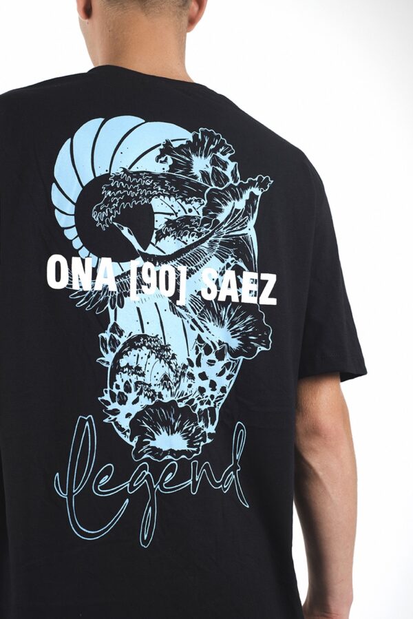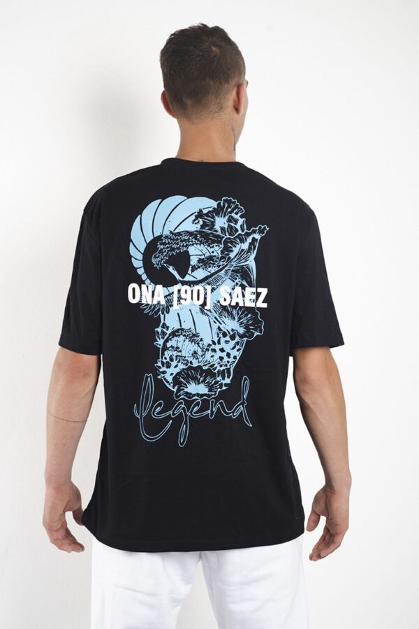 Estampa a contra tono centralizada en la espalda y logo de marca al frente.