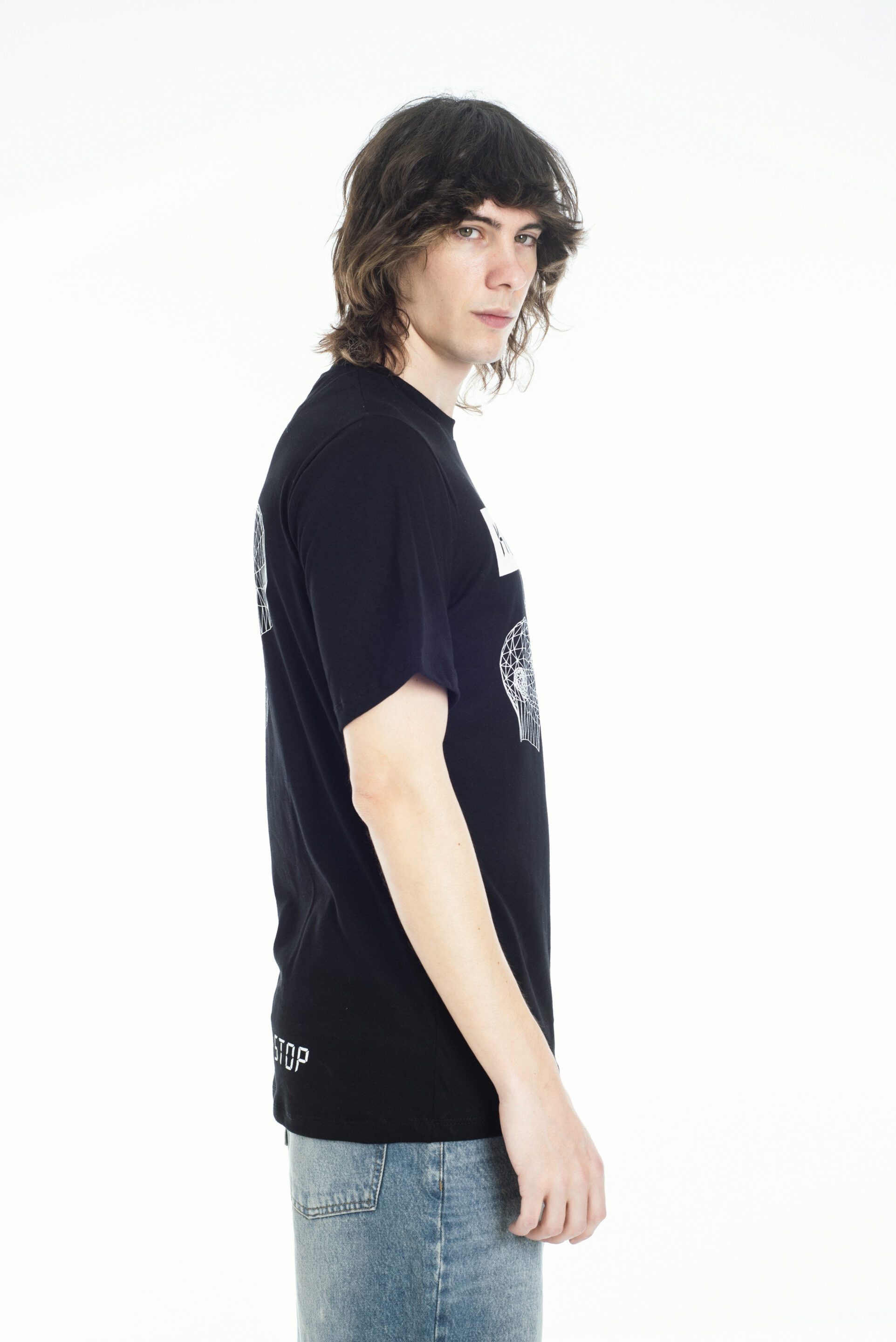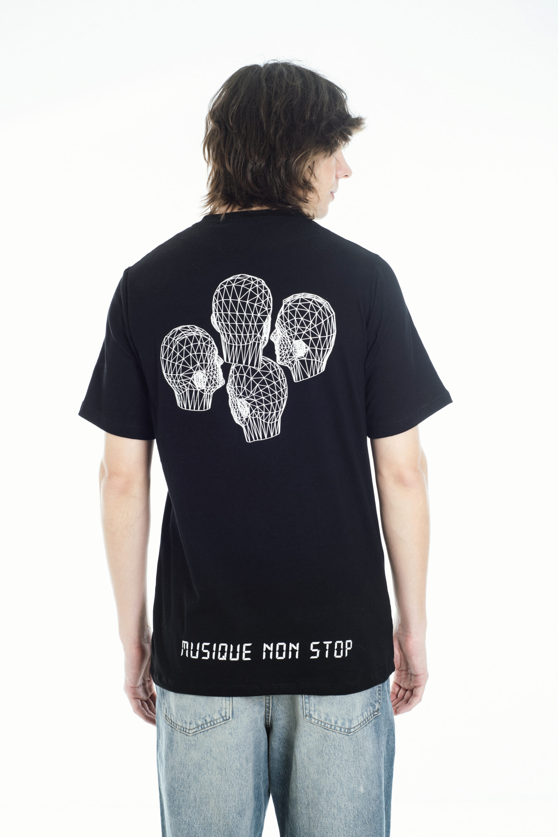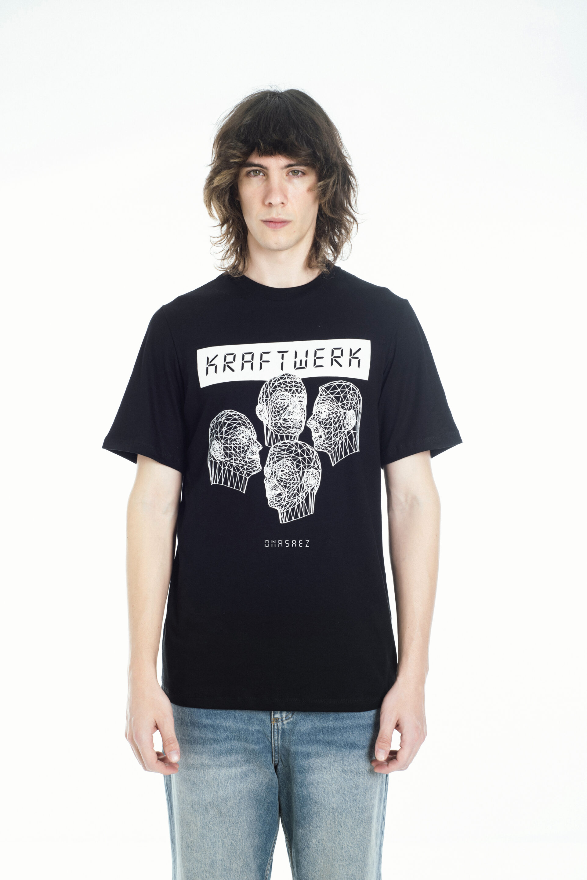 Presenta estampa frontal y posterior con gráficos inspirados en la icónica banda Kraftwerk, en tonos blanco sobre fondo negro, que le aportan un estilo urbano y moderno. De mangas cortas y cuello redondo, es una prenda versátil que combina comodidad con una impronta musical y vanguardista.