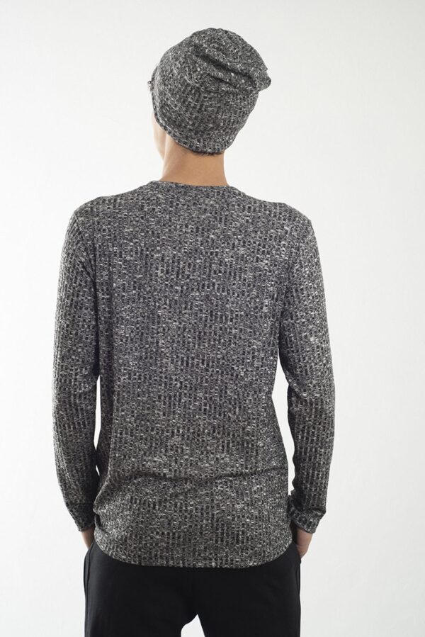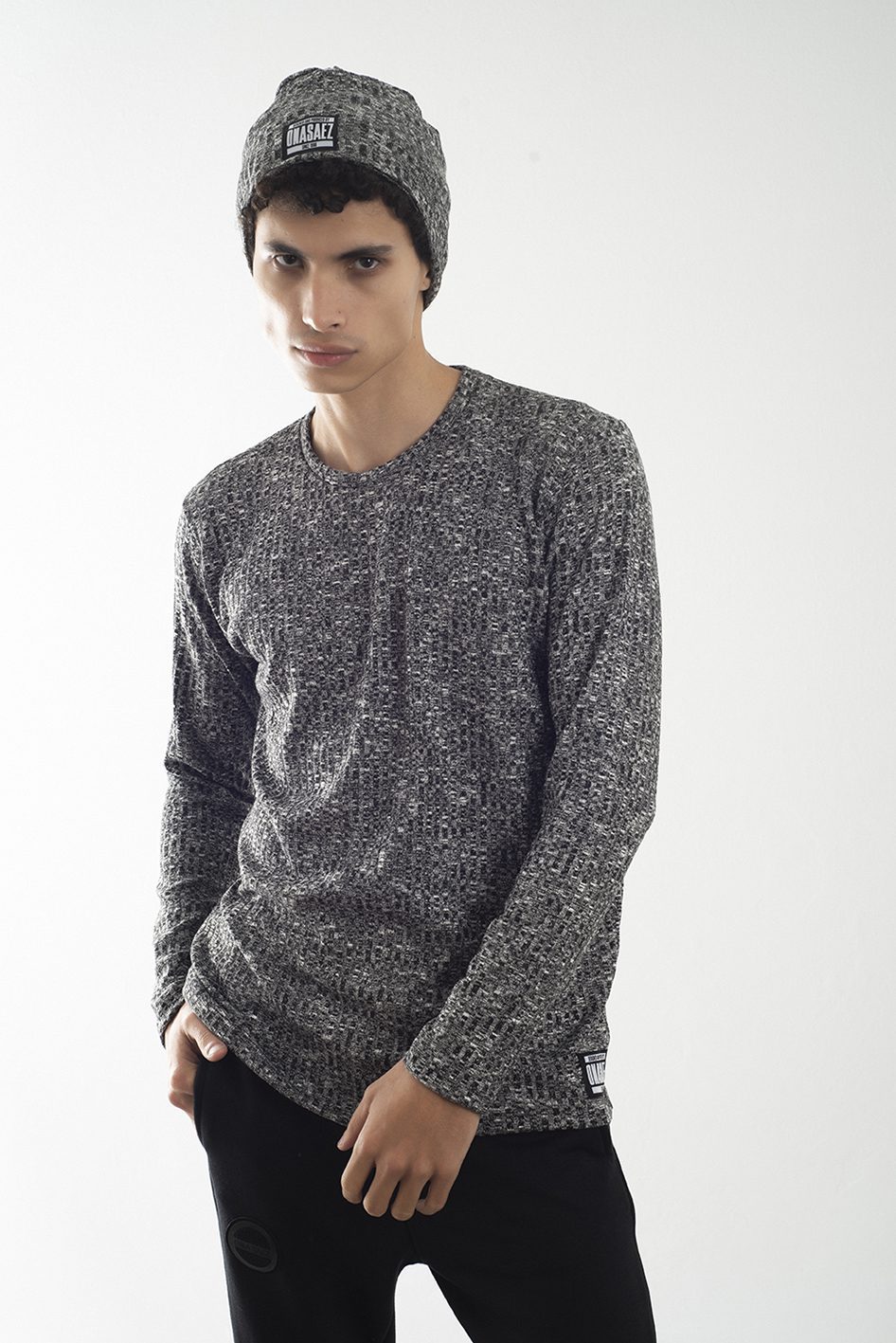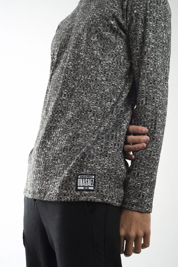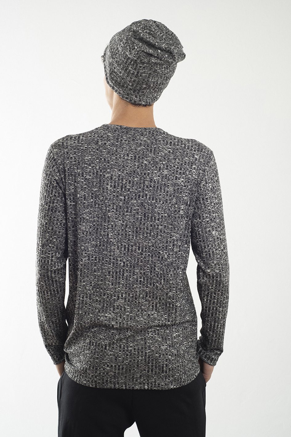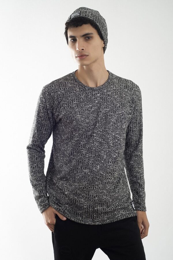 Remera regular fit , manga larga y cuello redondo, confeccionada en lanilla morley melange.