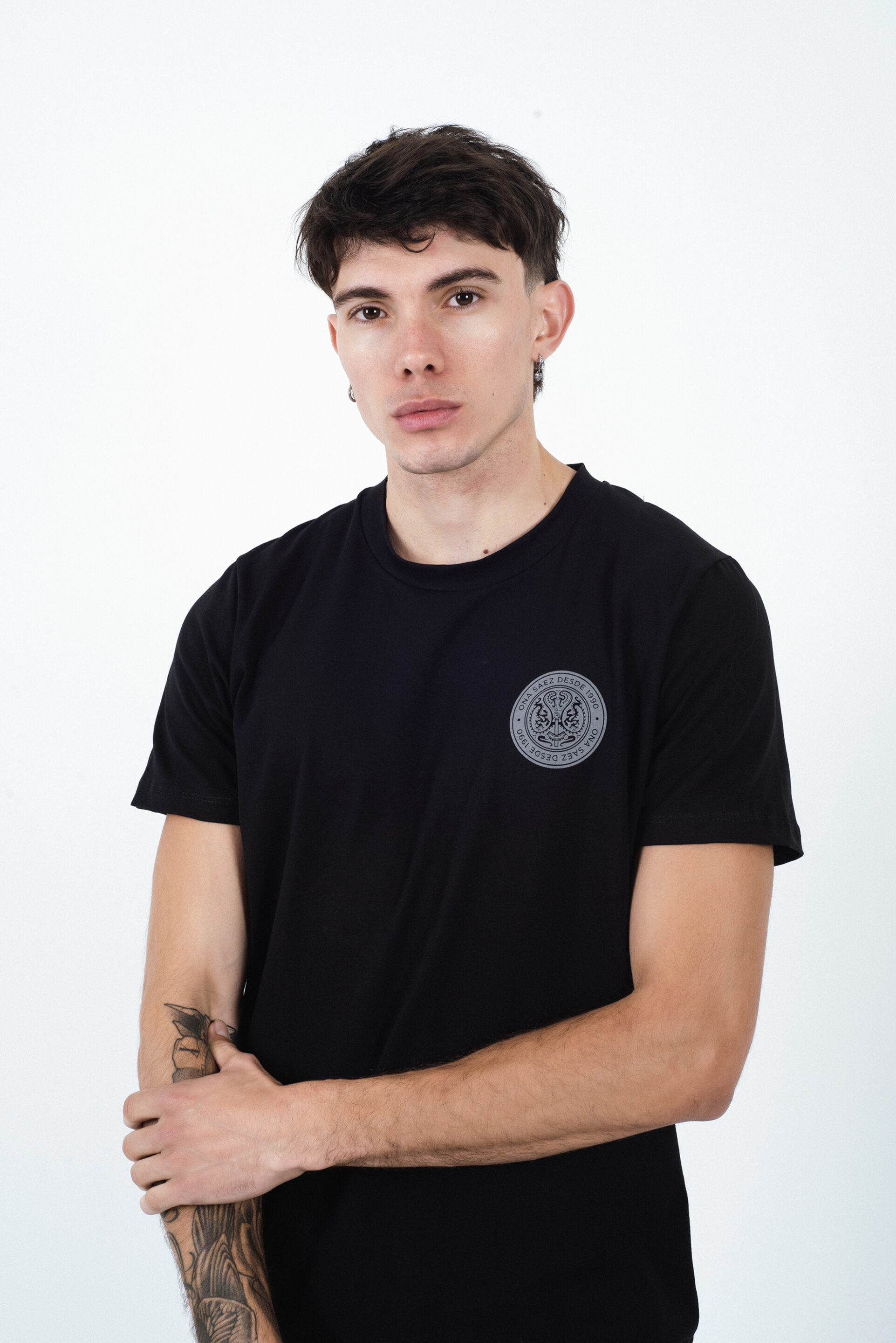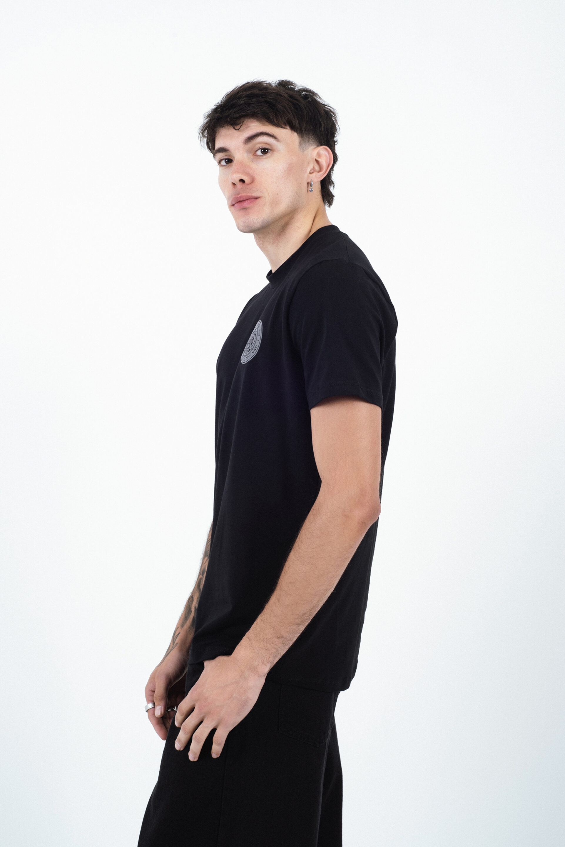 Remera regular fit confeccionada en algodón suave, de cuello redondo y manga corta. Presenta un estampado circular tipo sello en el pecho, que aporta un detalle moderno y distintivo sin perder la simpleza del diseño.
