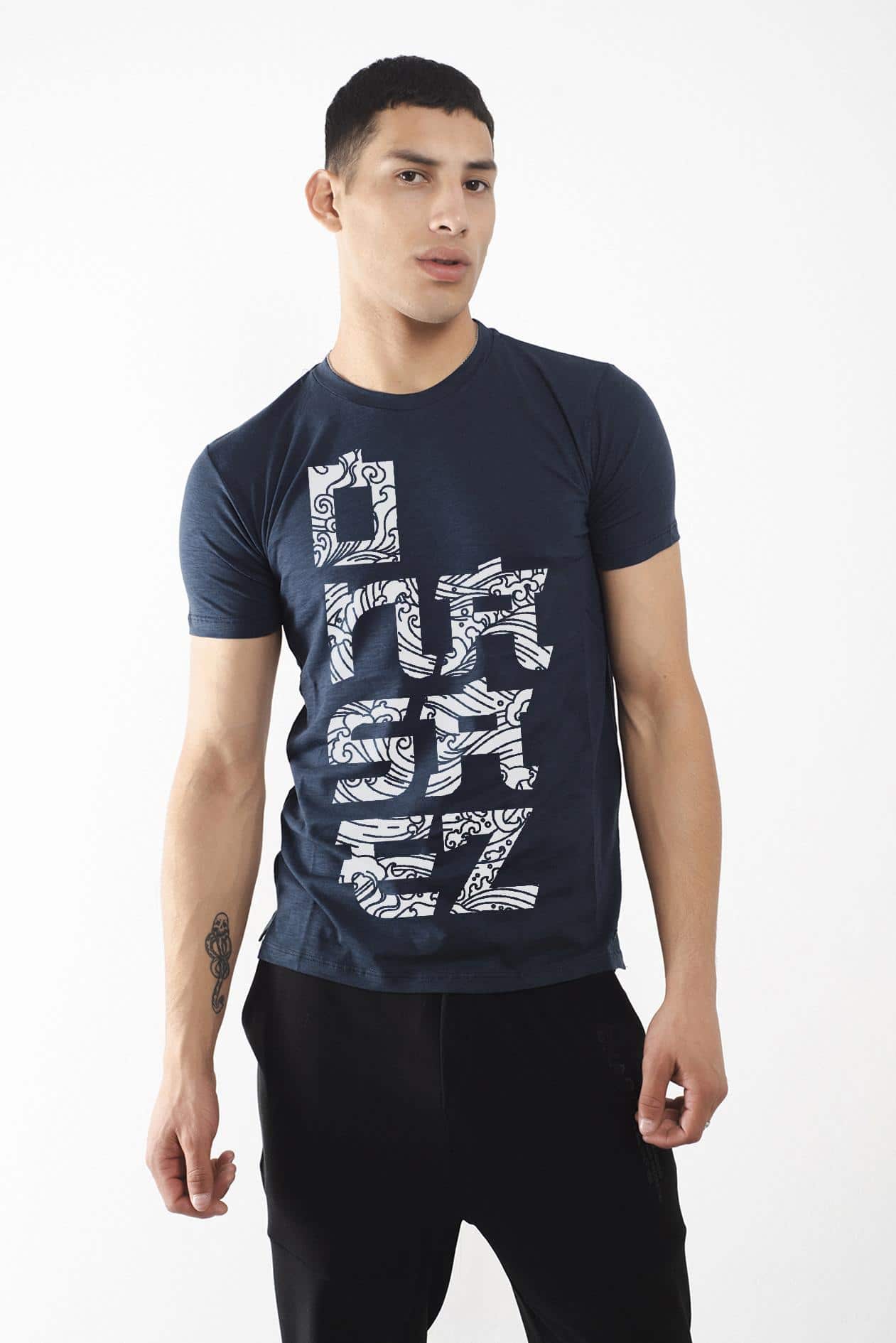Estampa a contra tono centralizada en el frente.