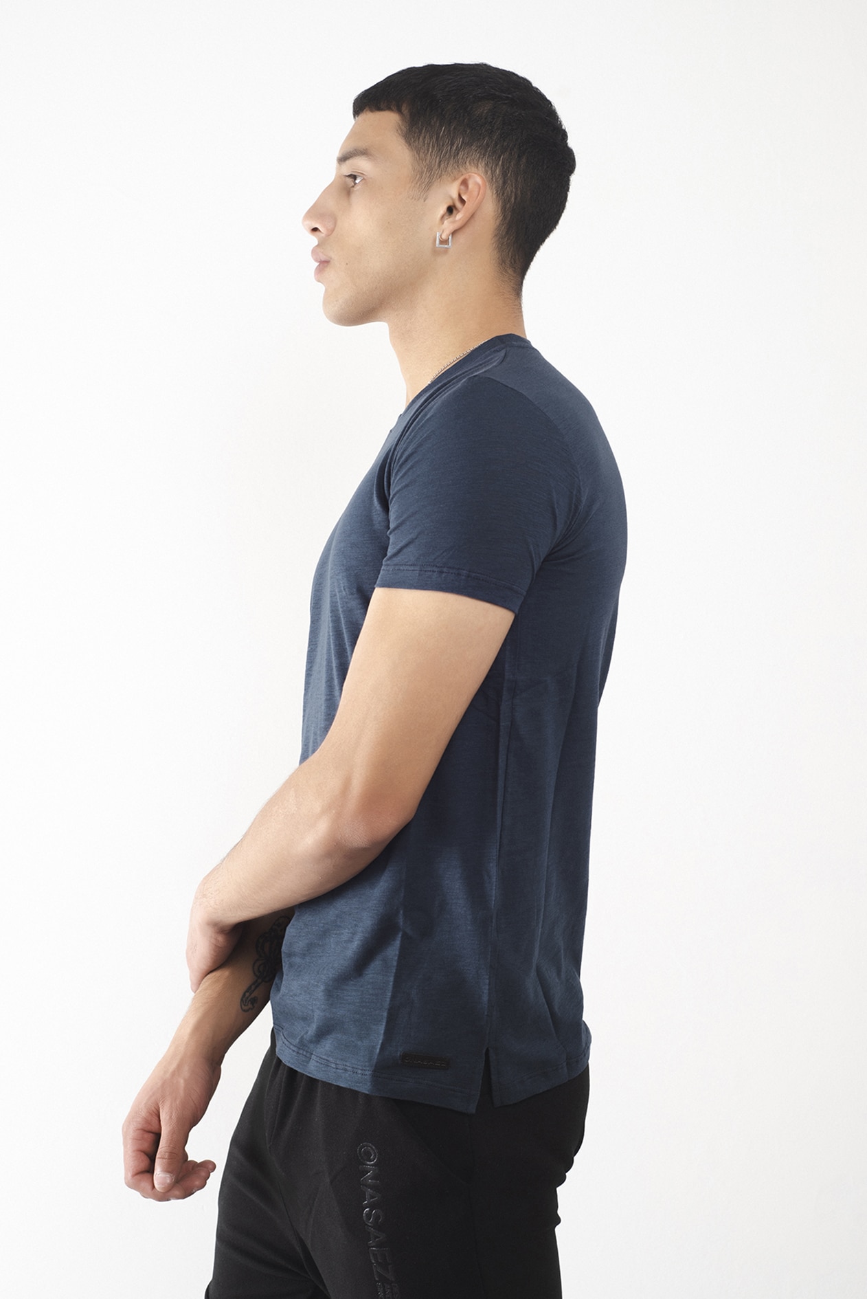 Remera regular fit, manga corta y cuello redondo, confeccionada en algodón pima perú color azul.