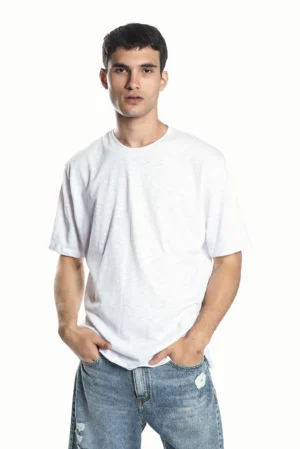 Remera regular fit, cuello redondo y manga corta, confeccionada en algodón con lycra, de un grosor alto, lo que significa que es lo suficientemente resistente como para ofrecer durabilidad, pero al mismo tiempo es suave al tacto.
