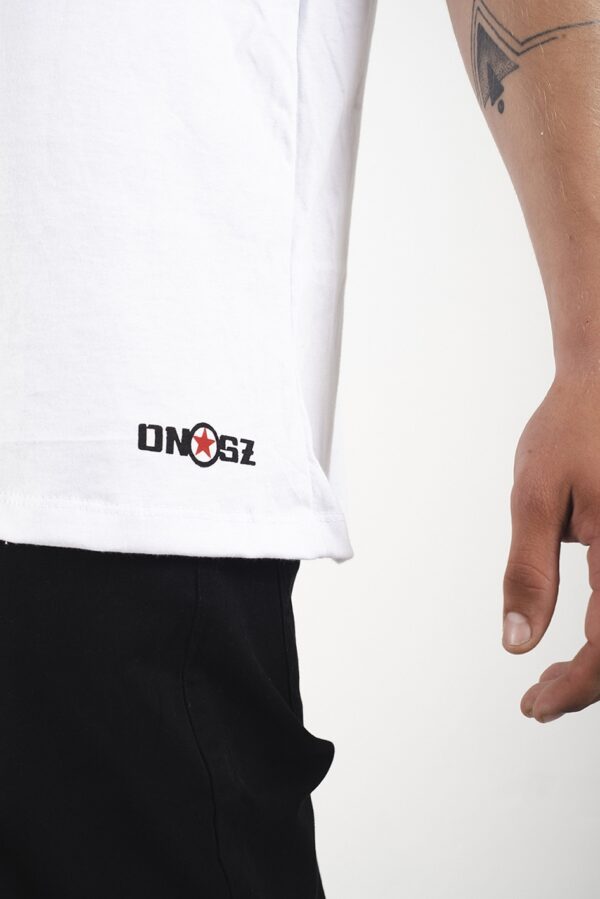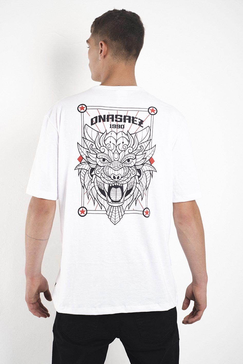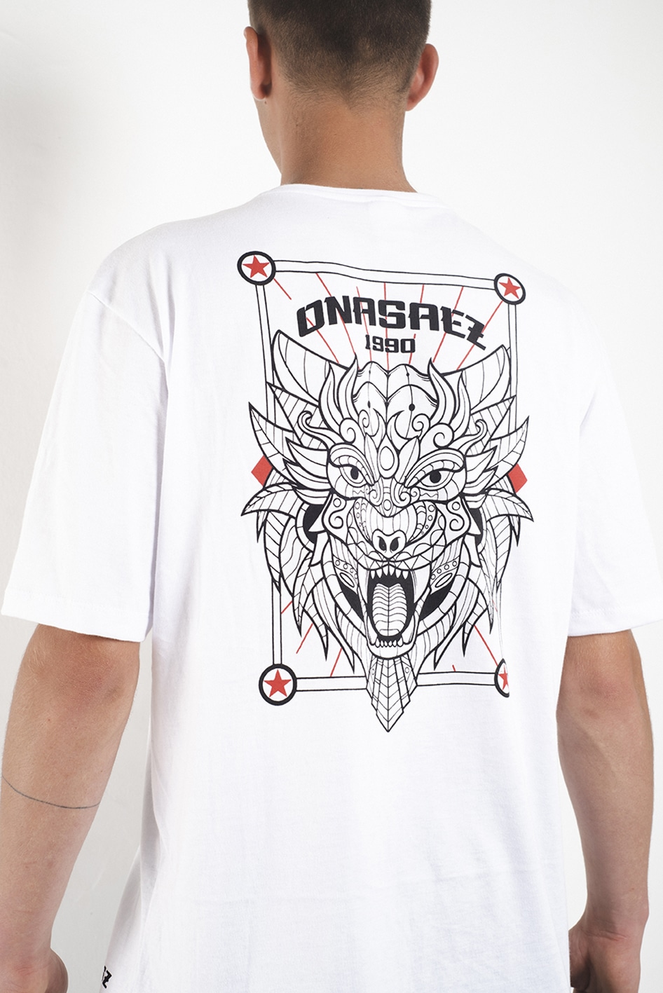 Estampa a contra tono centralizada en la espalda y logo de marca al frente.