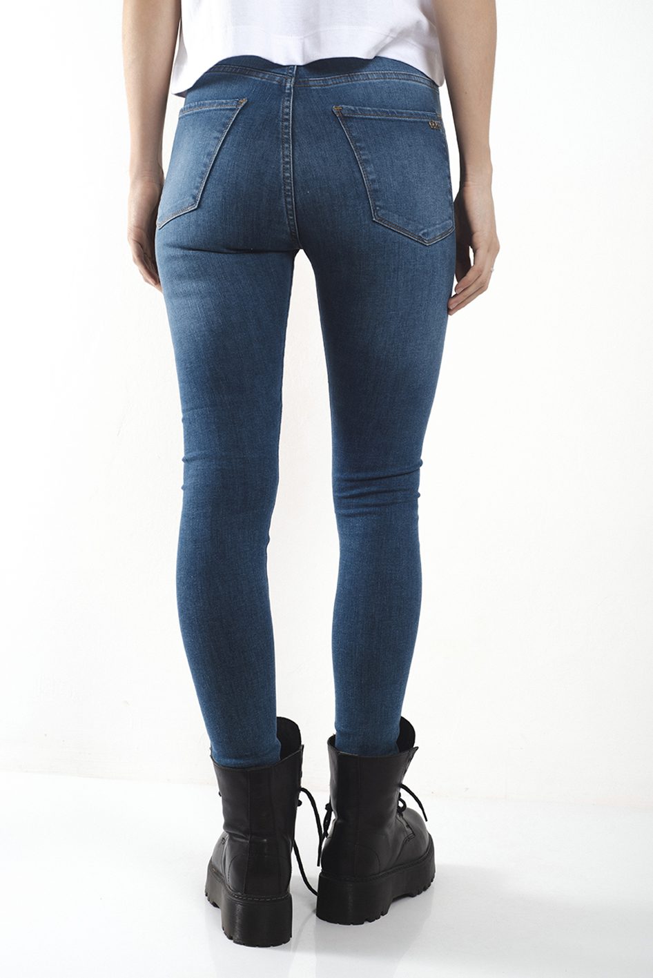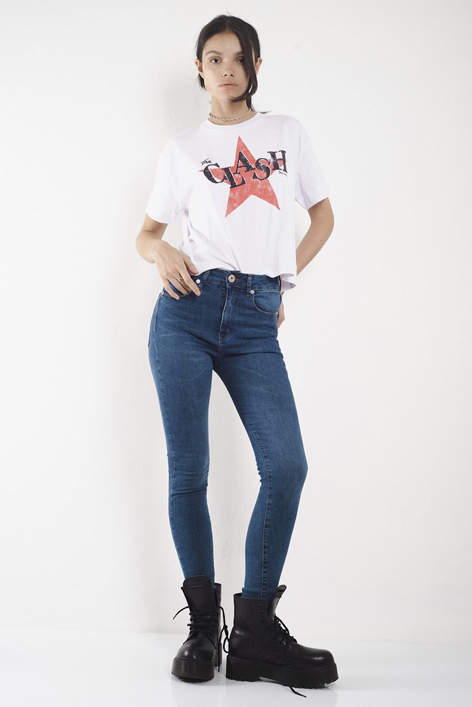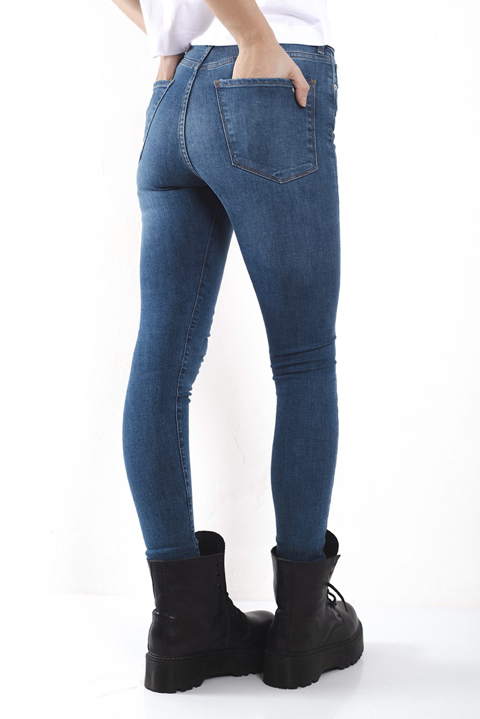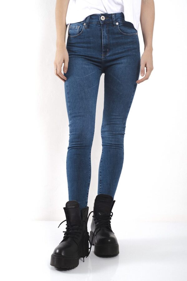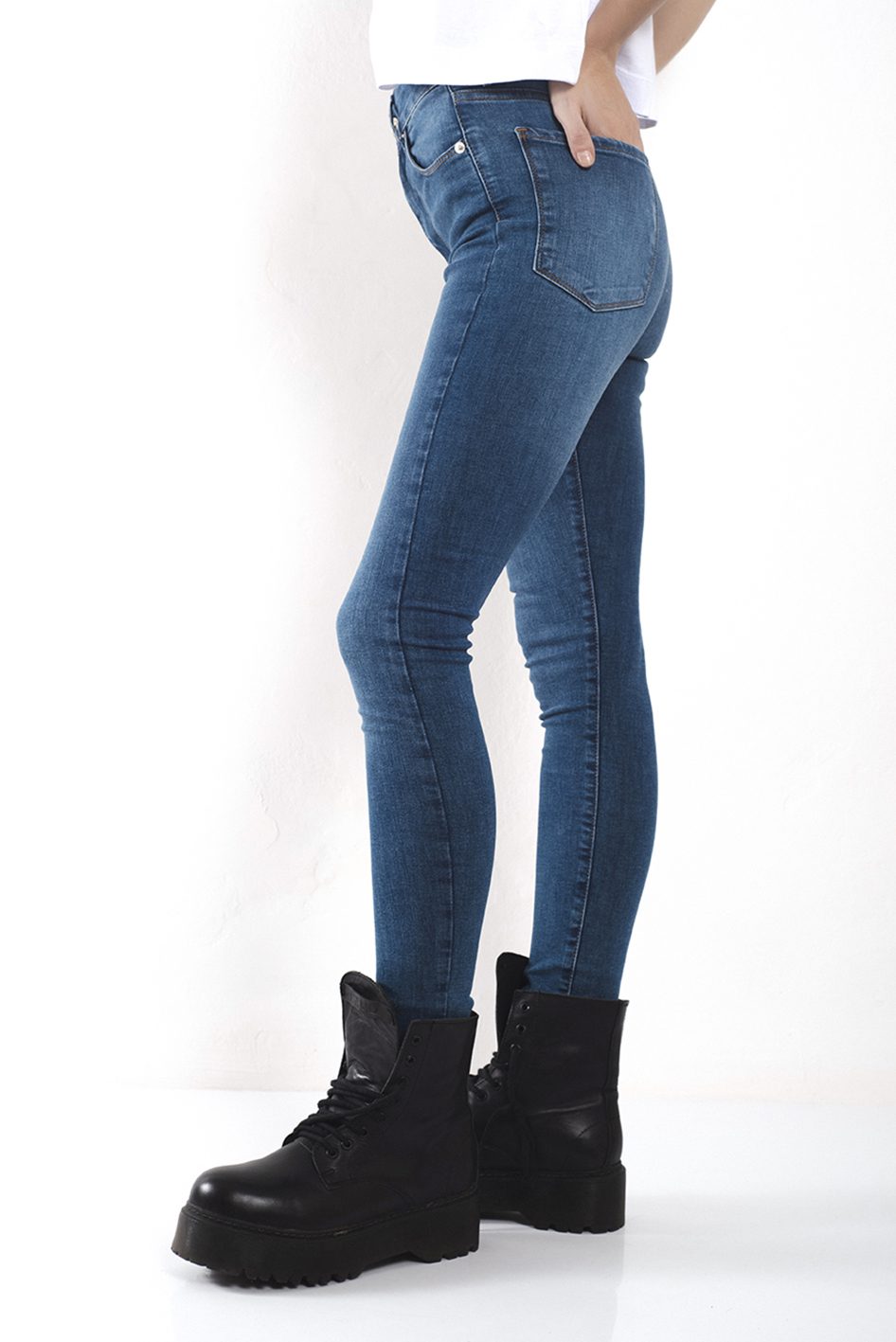 Jean super skinny tiro alto, confeccionado en Denim de algodón elastizado.