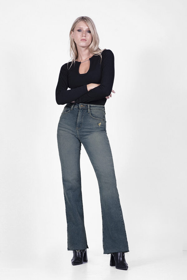 Jean slim tiro alto, confeccionado en Denim stretch 98% algodon, 2% elastano.