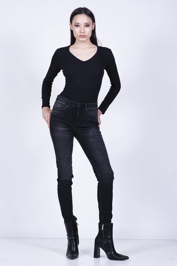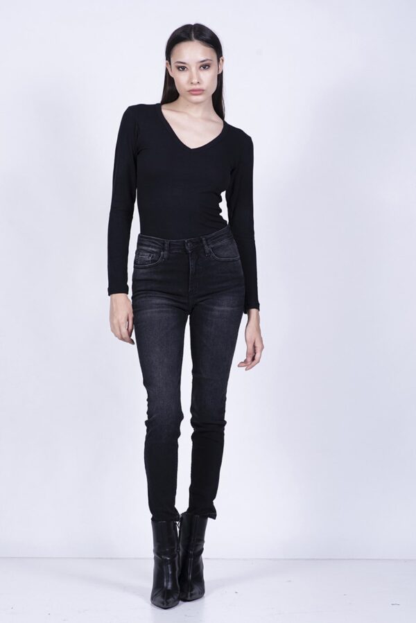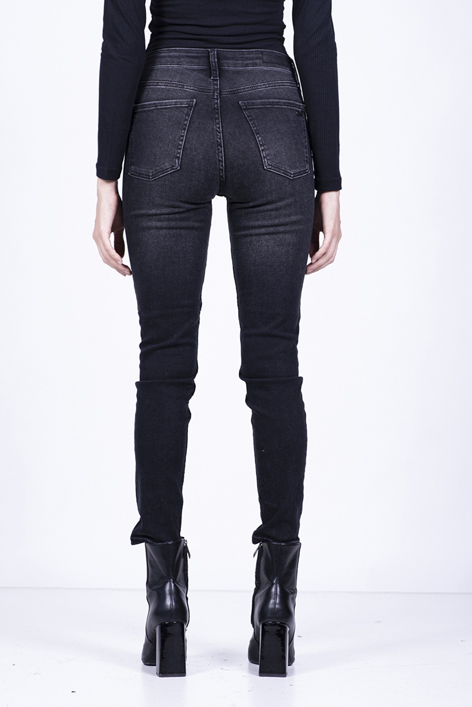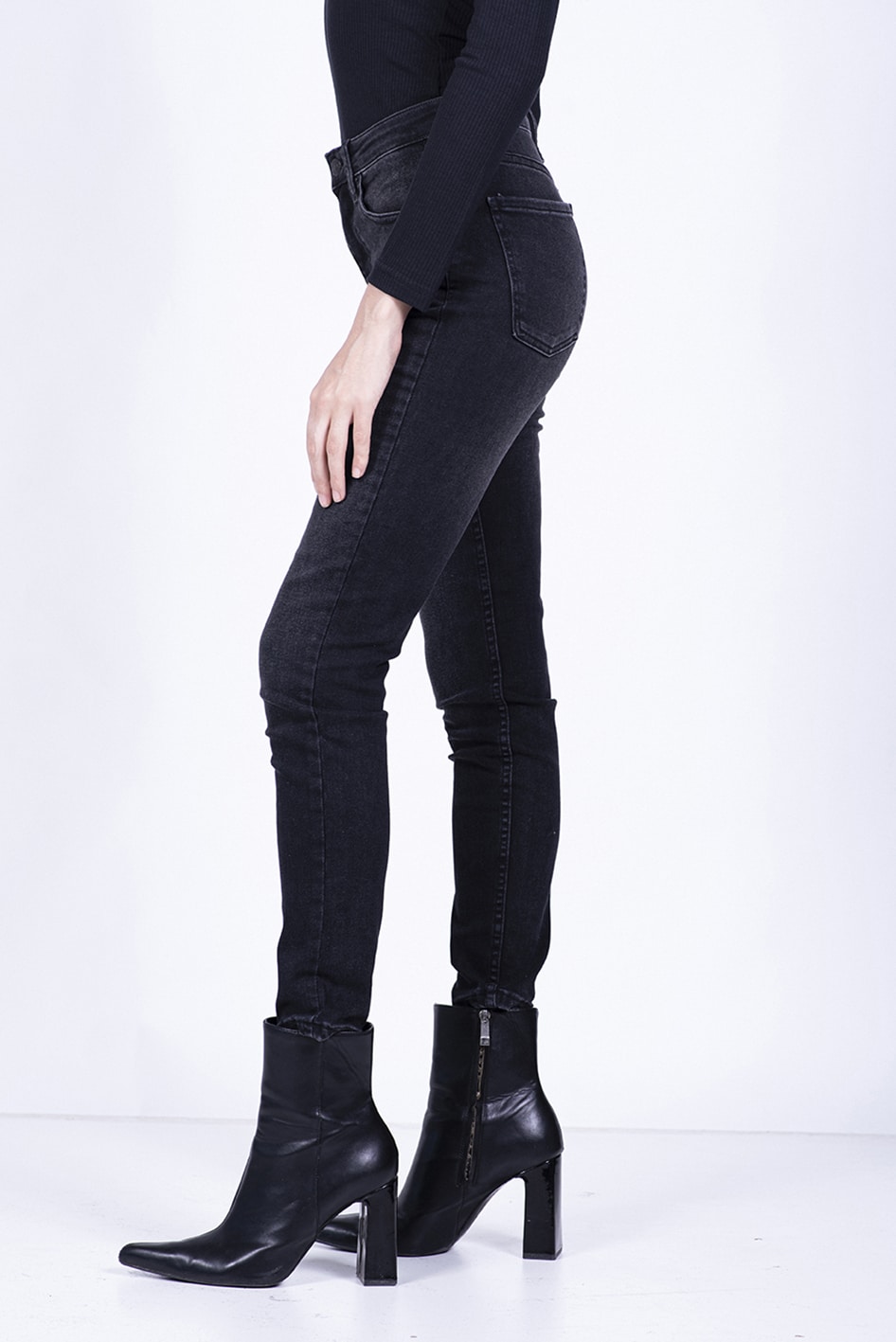 Jean super skinny tiro medio, confeccionado en Denim de algodón elastizado.