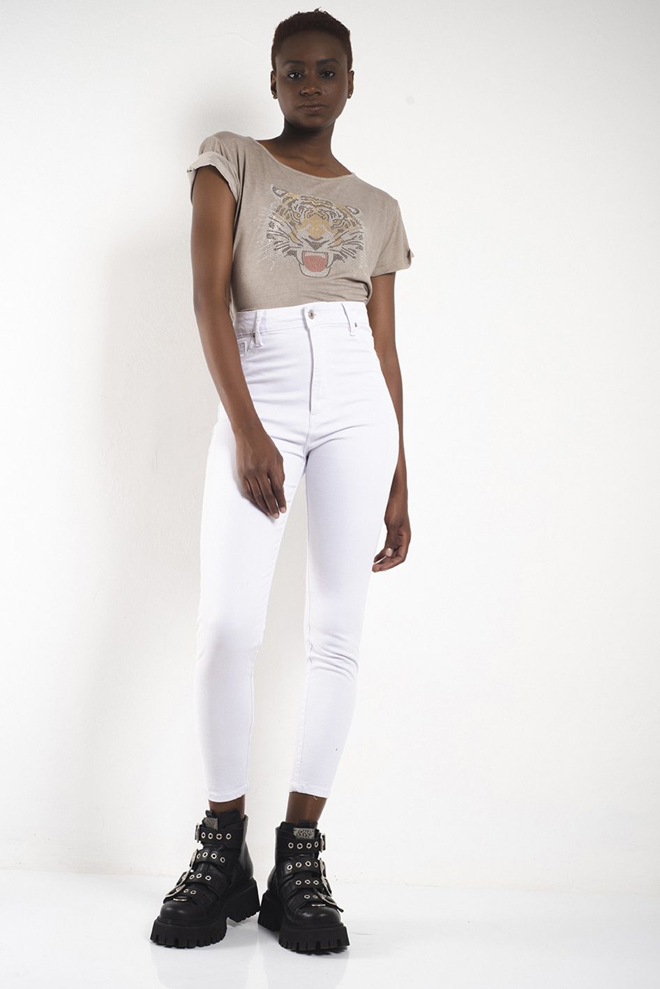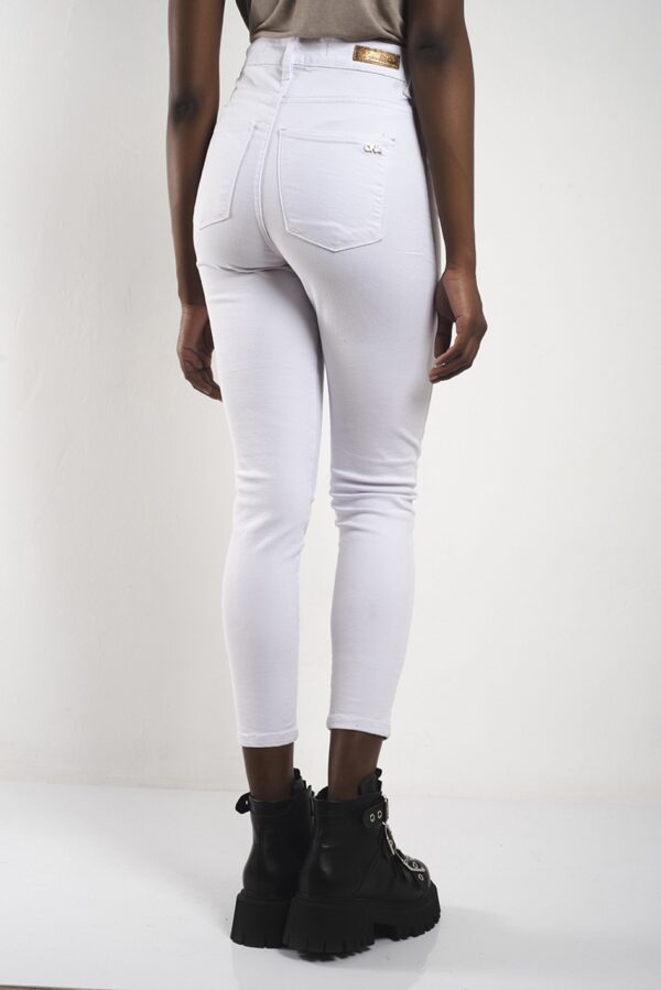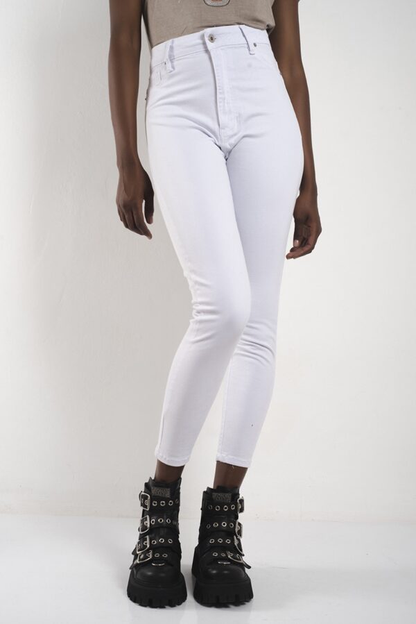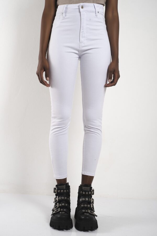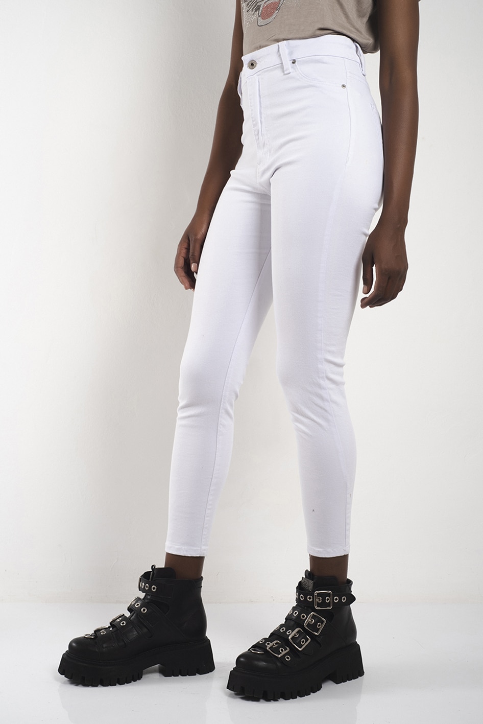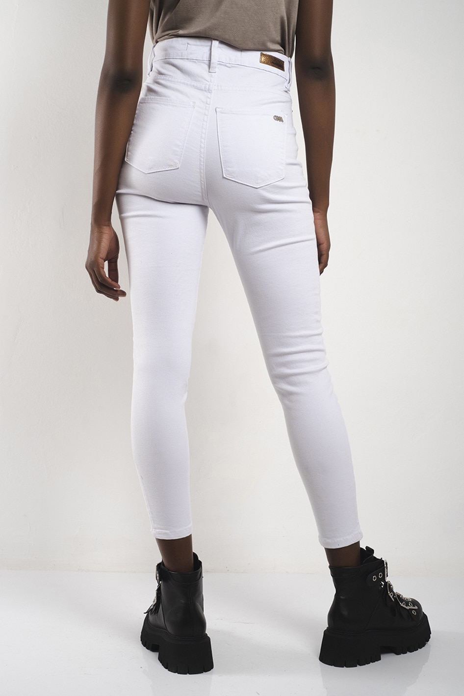 Jean super skinny tiro medio, confeccionado en gabardina elastizada color blanca
