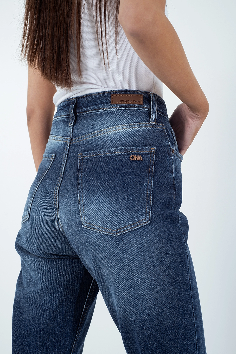 Jean de silueta Mom fit con tiro super alto, confeccionado en denim rígido 100% algodón, que ofrece estructura y estilo vintage.