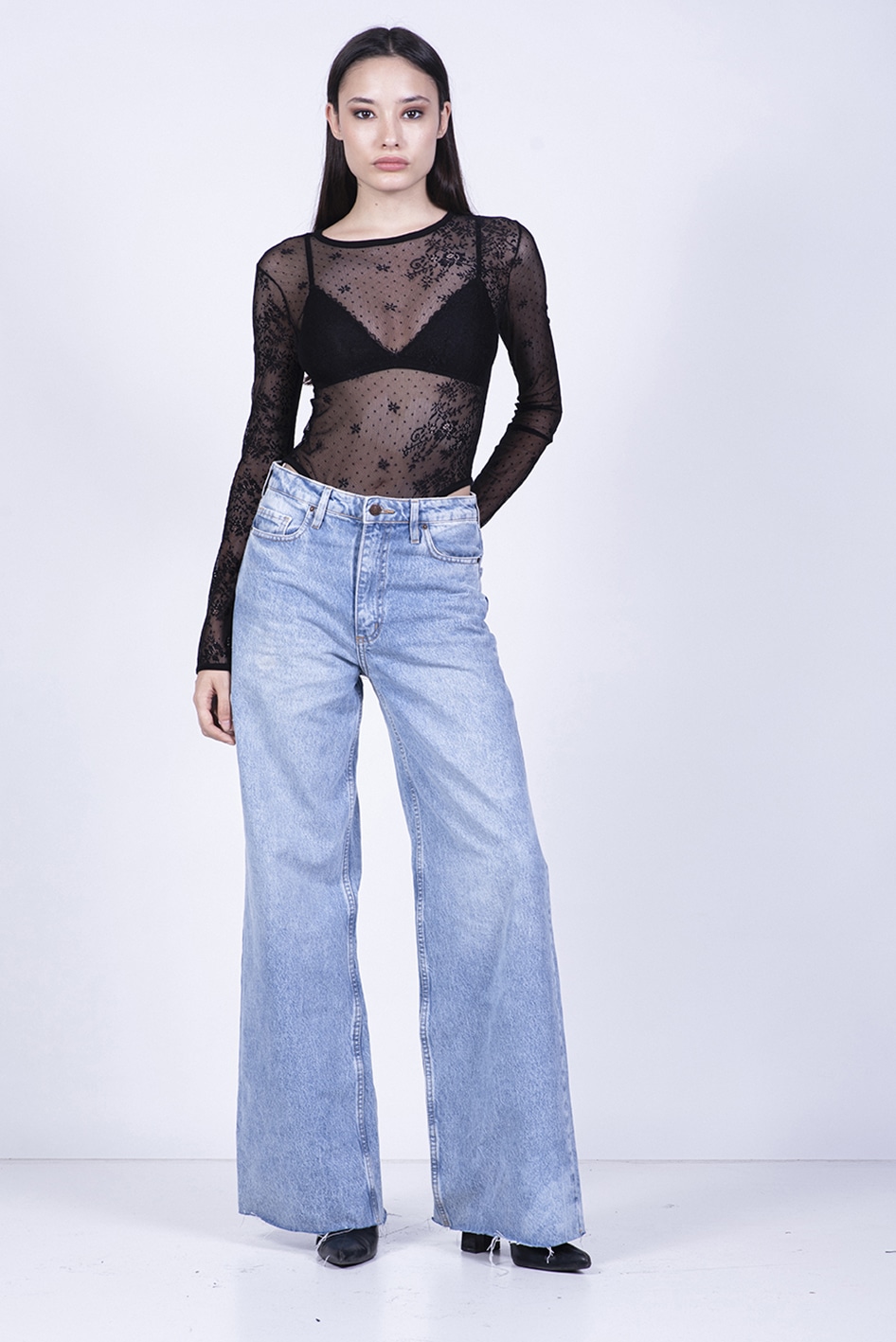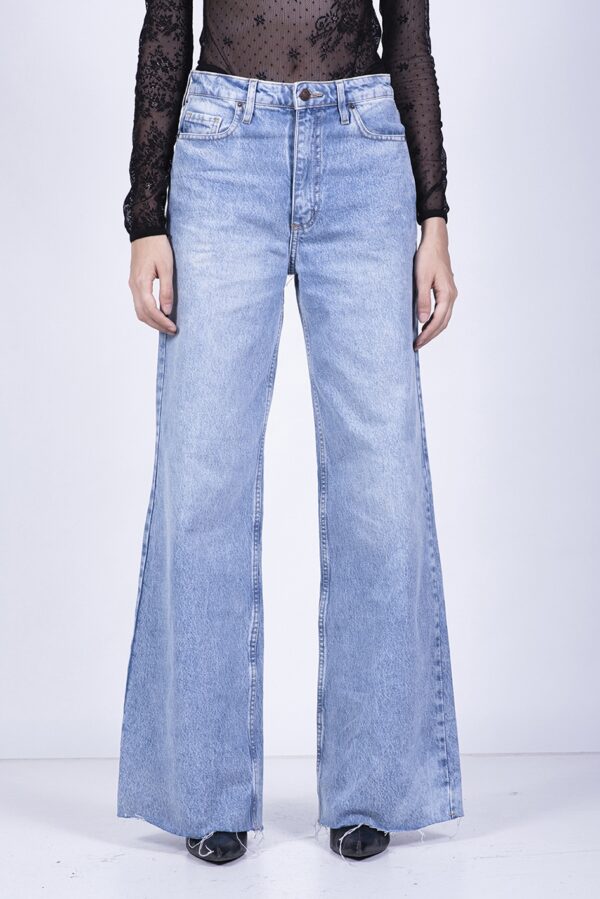 Jean tiro alto modelo wide leg, confeccionado en Denim de algodón