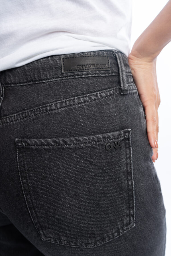 Proceso de lavado negro gastado con bigote laser y localizado.