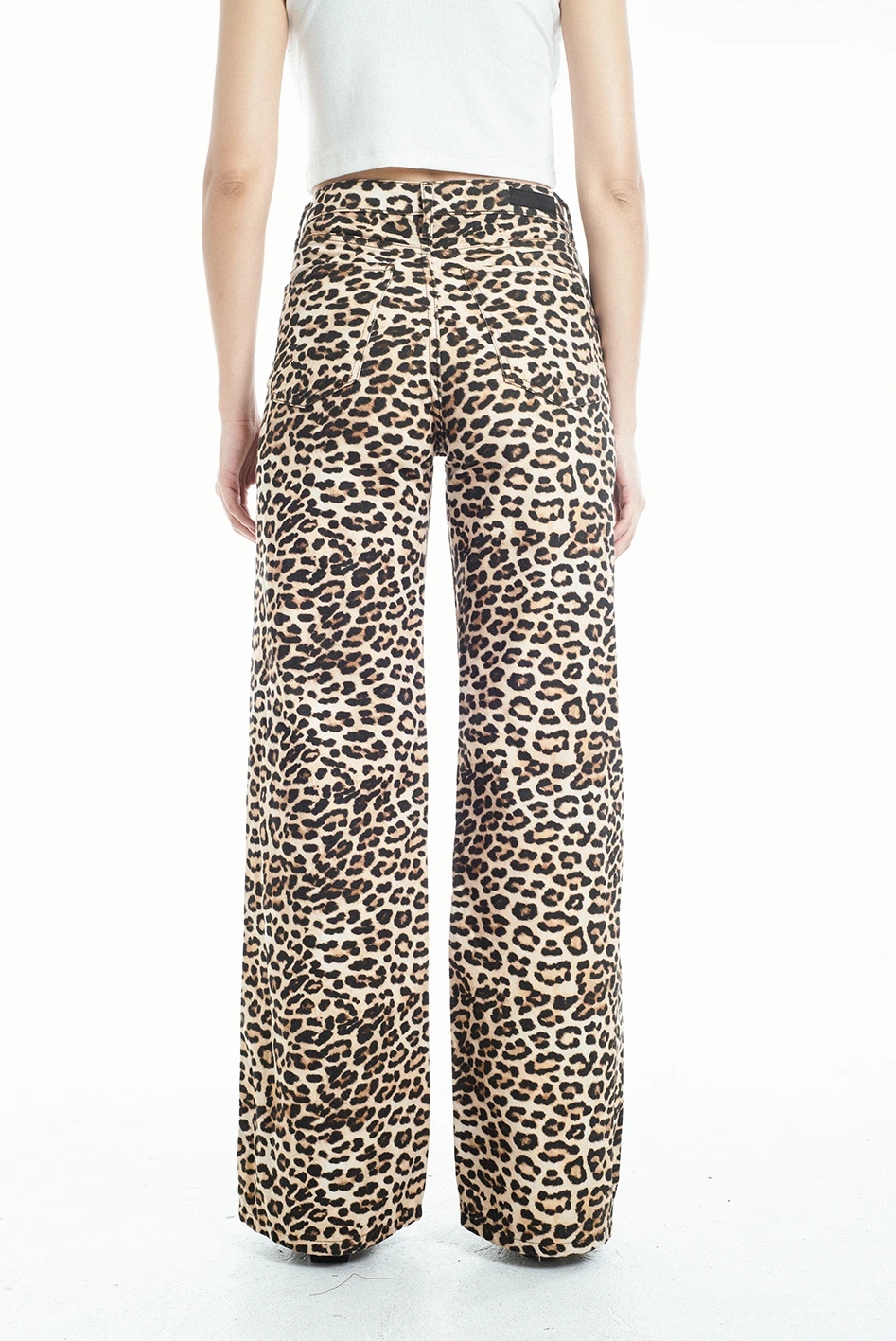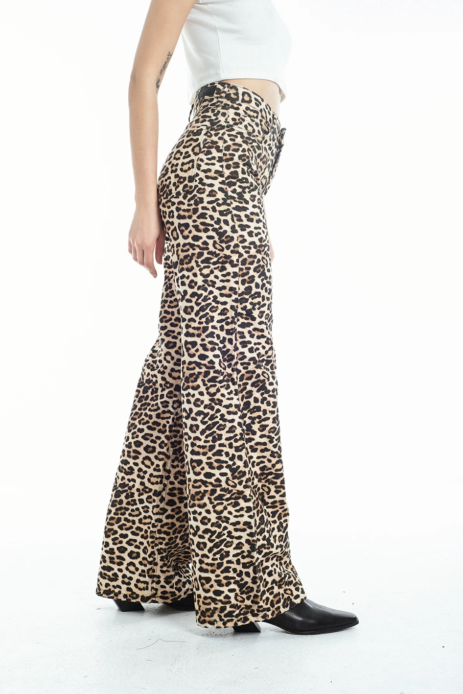 Jean confeccionado en denim con estampa animal print tipo leopardo.