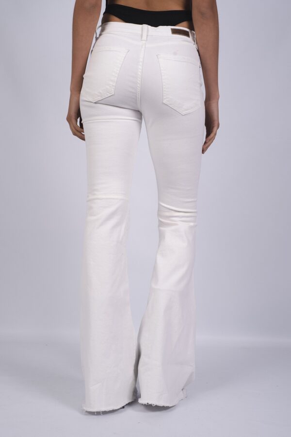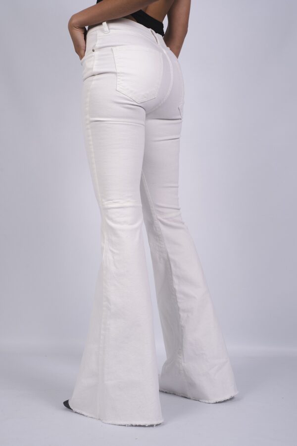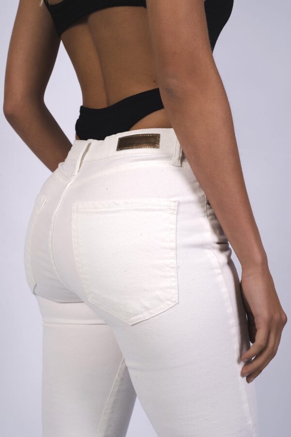 Jean oxford tiro alto, confeccionado en Denim de algodón elastizado color blanco.