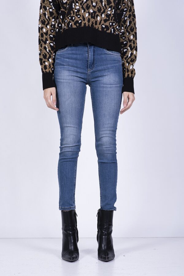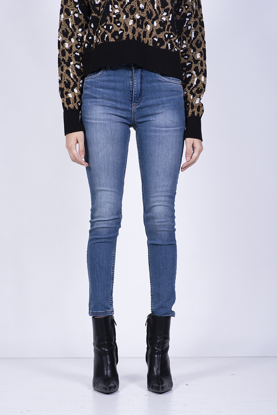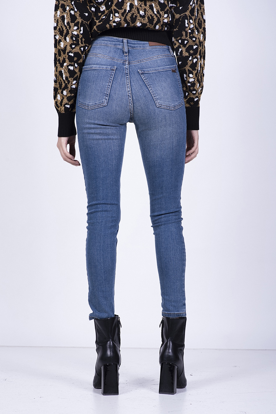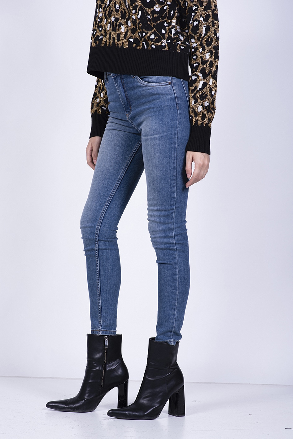 Jean super skinny tiro medio, confeccionado en Denim de algodón elastizado.