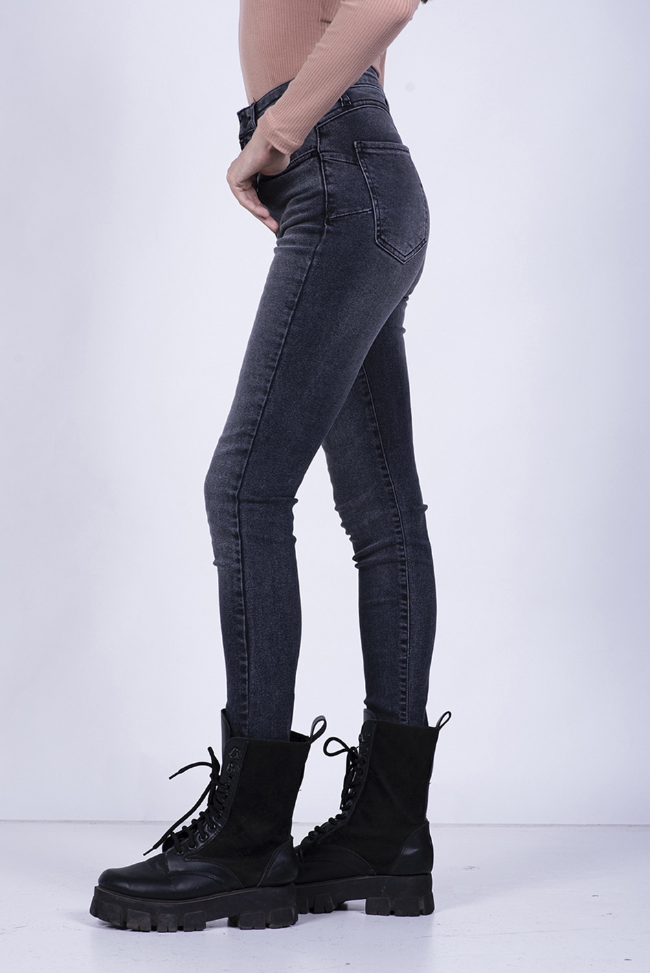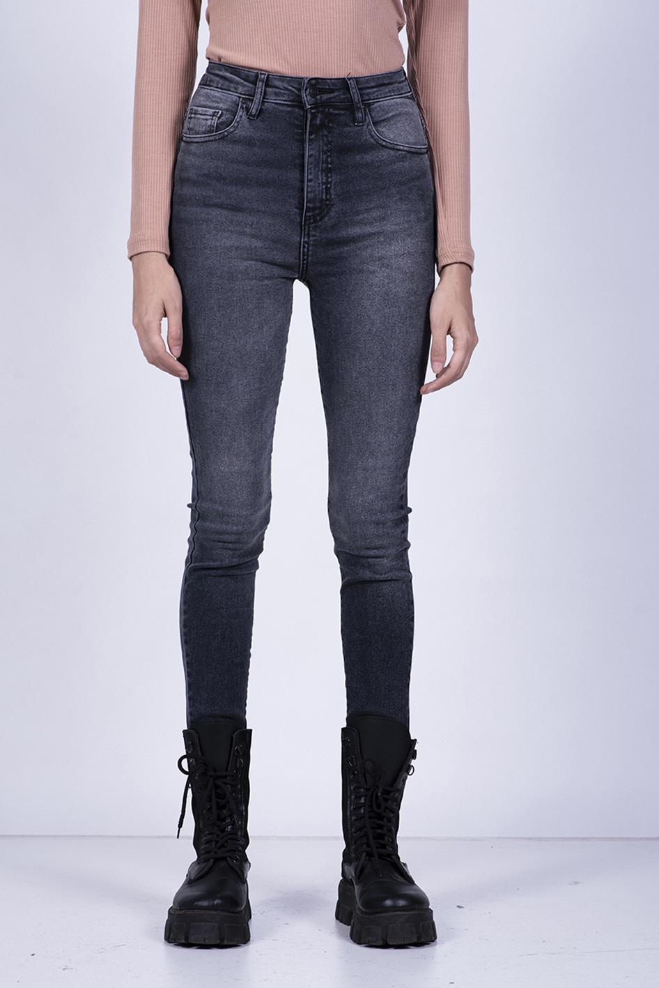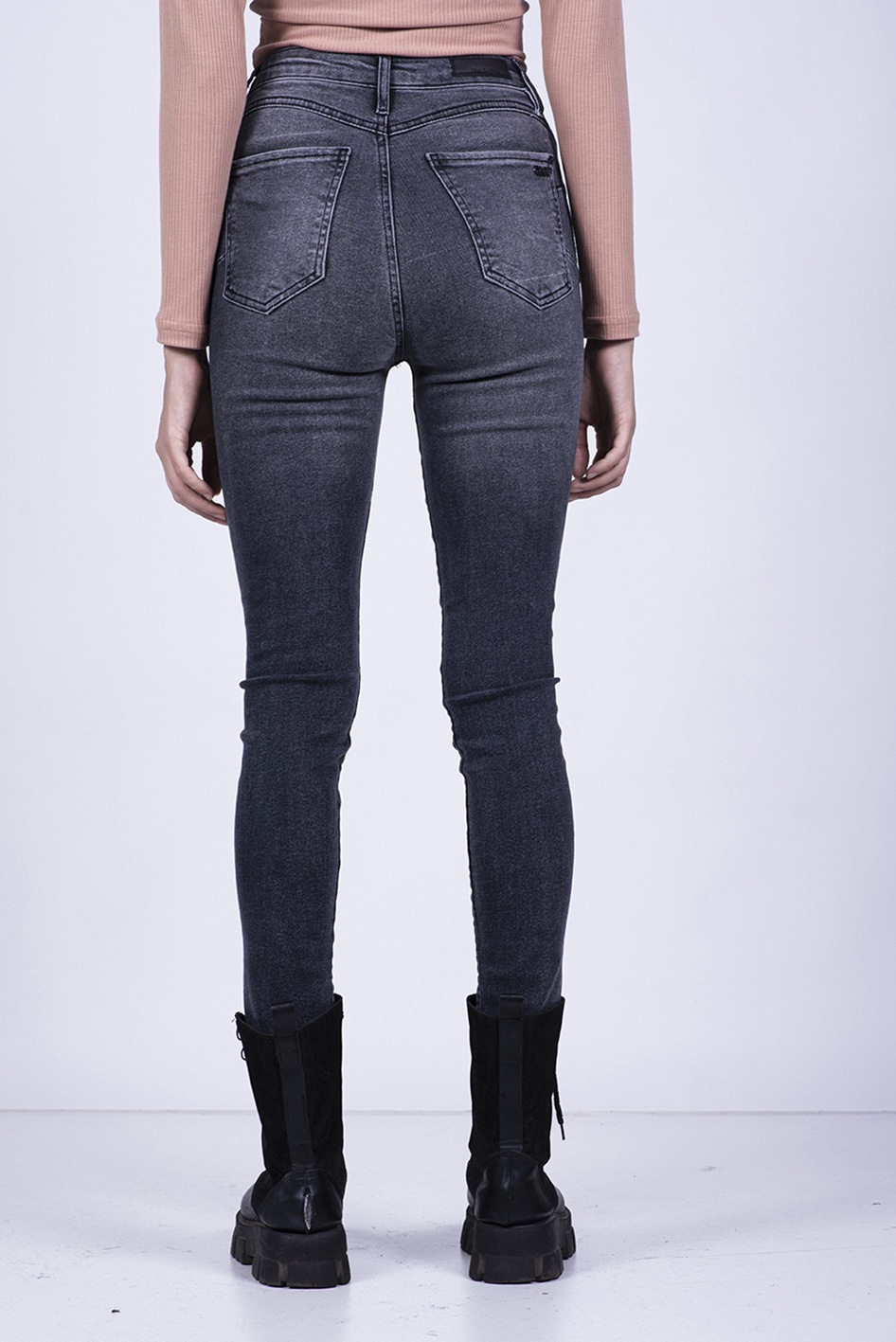Jean super skinny tiro alto, confeccionado en Denim de algodón elastizado (tejido super stretch)