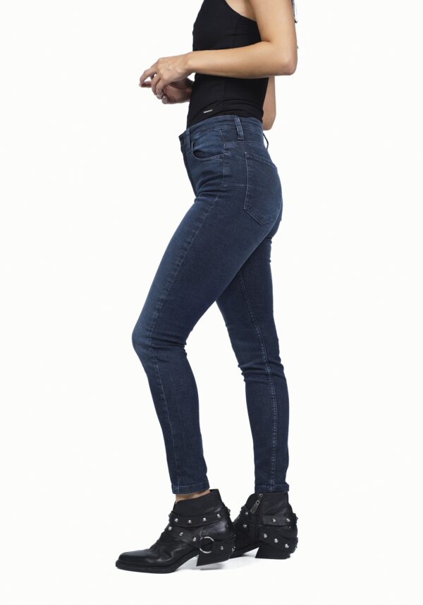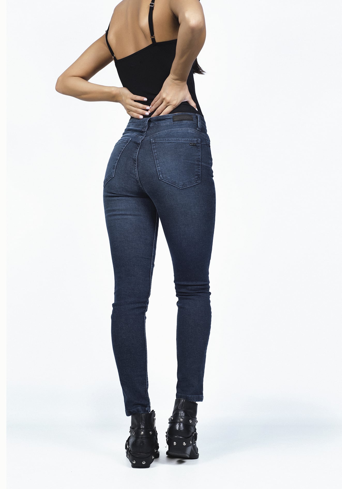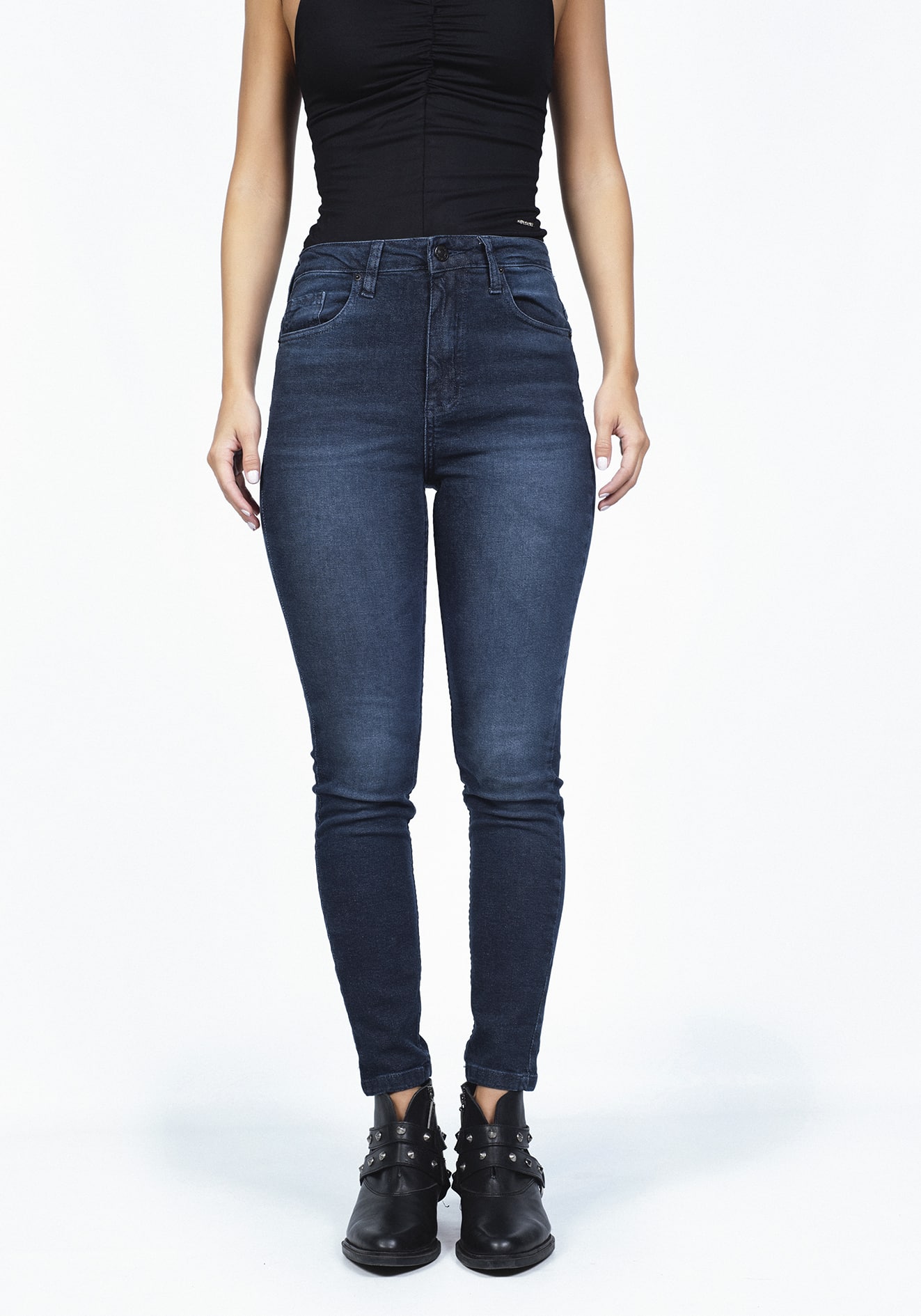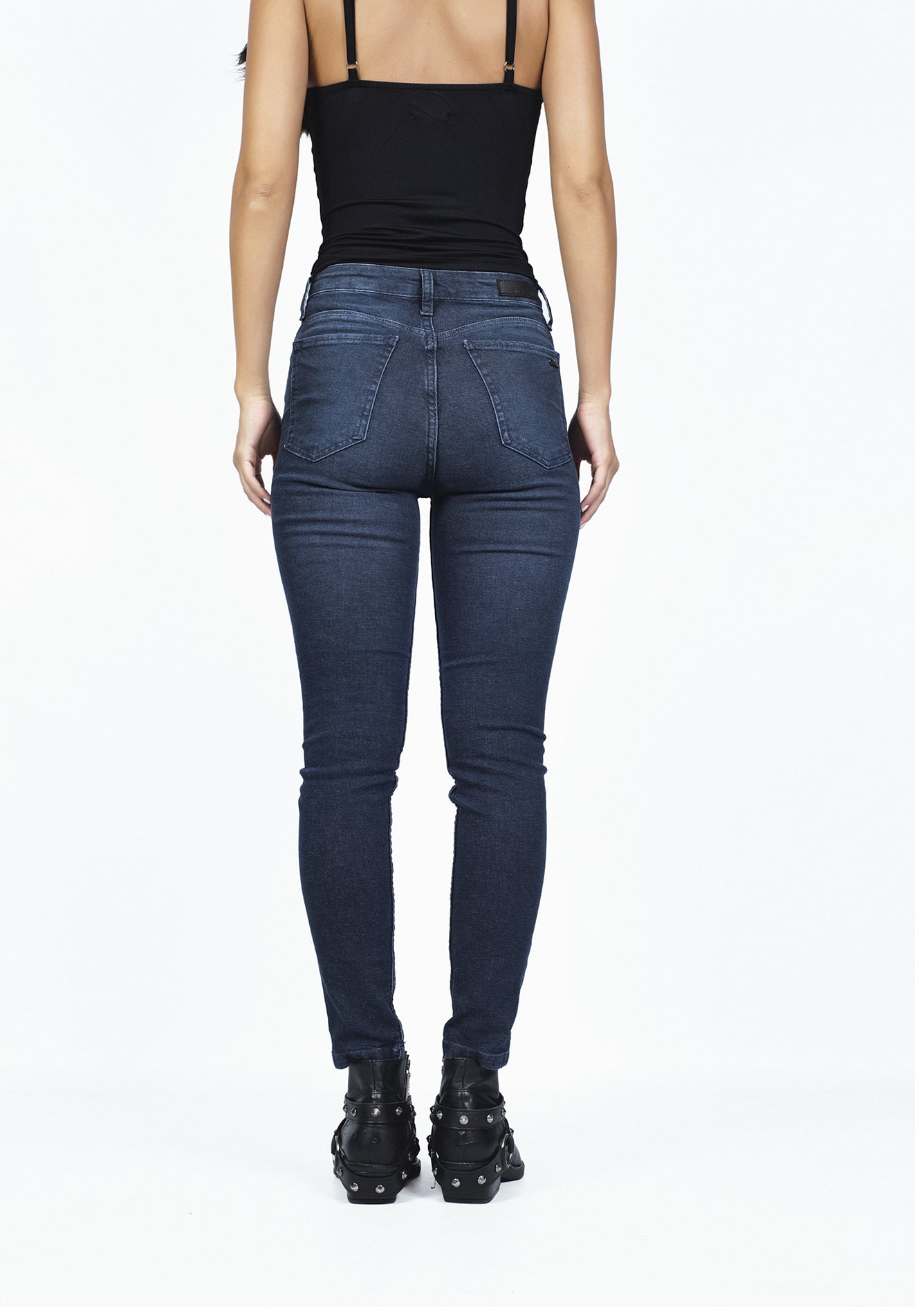 Jean skinny tiro alto, confeccionado en Denim de algodón elastizado (tejido super stretch) 98% algodón, 2% elastano.