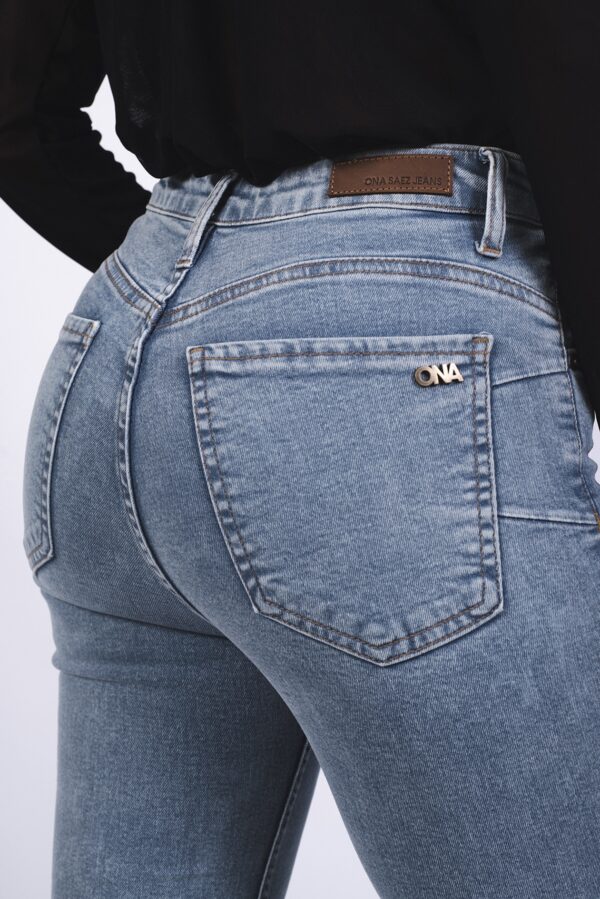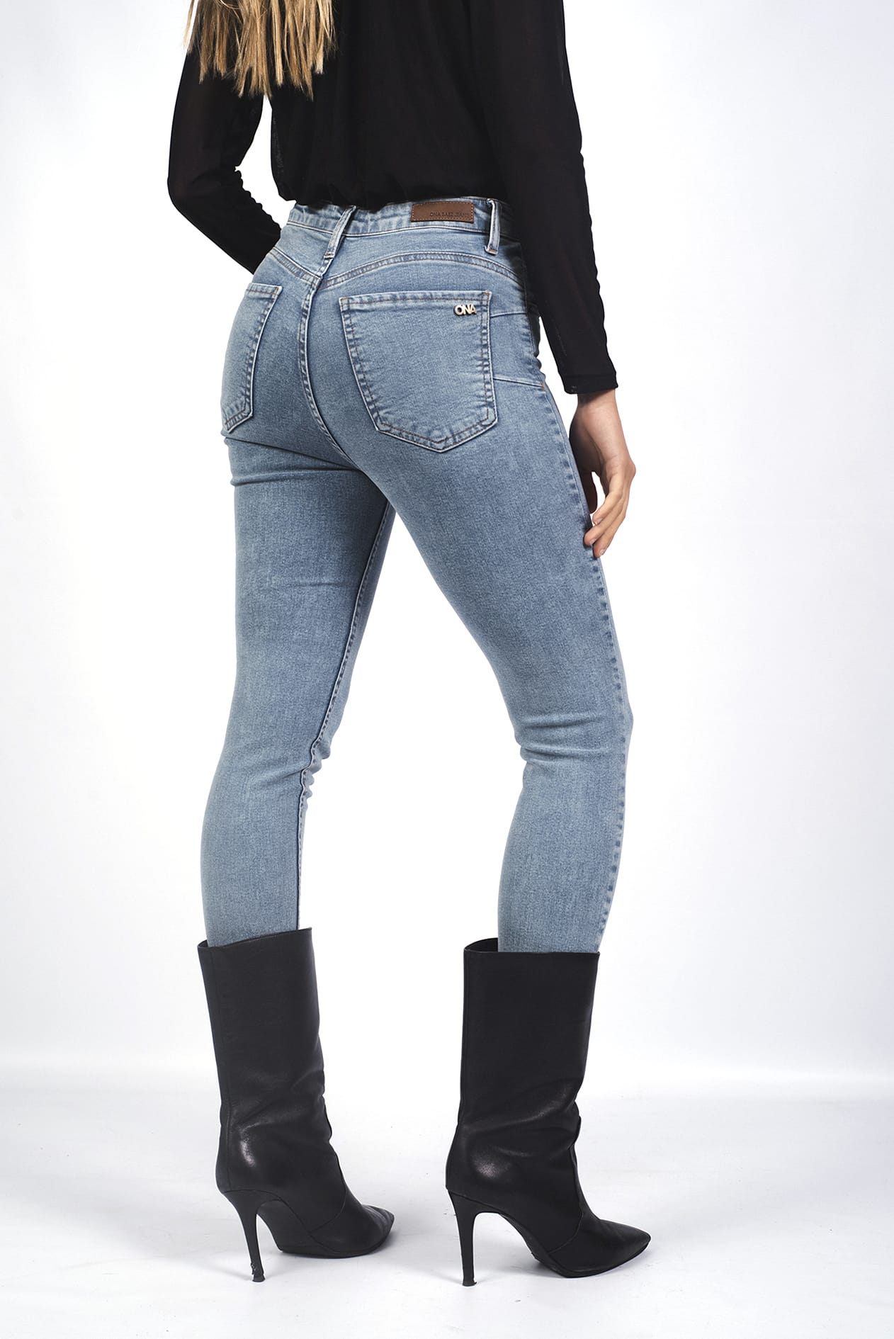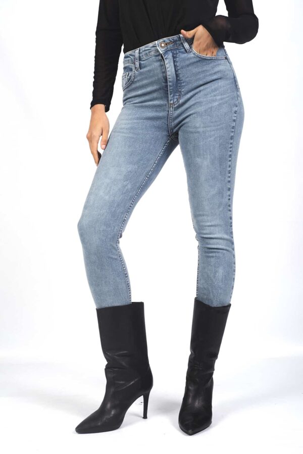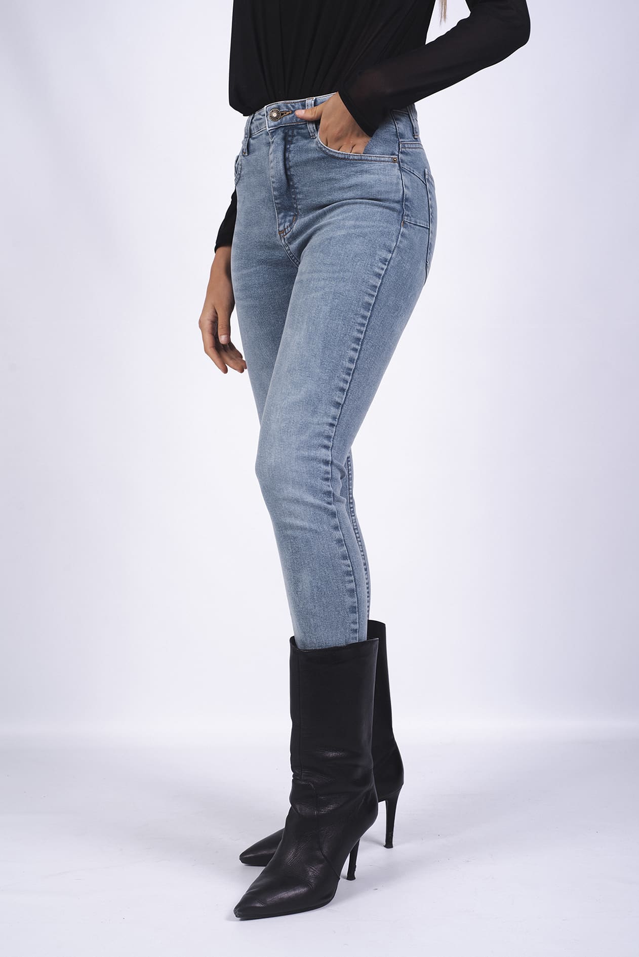 Jean super skinny tiro alto, confeccionado en Denim de algodón elastizado (tejido super stretch).