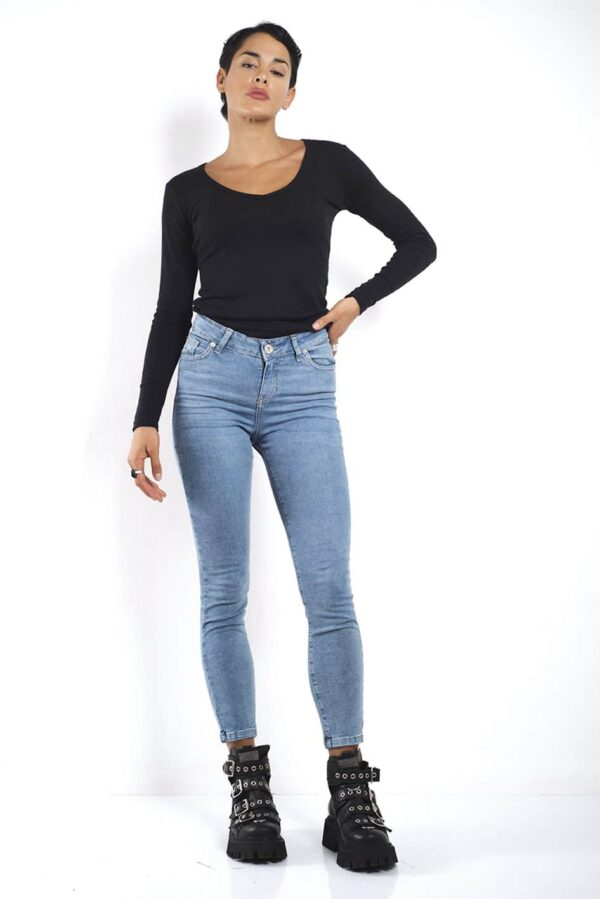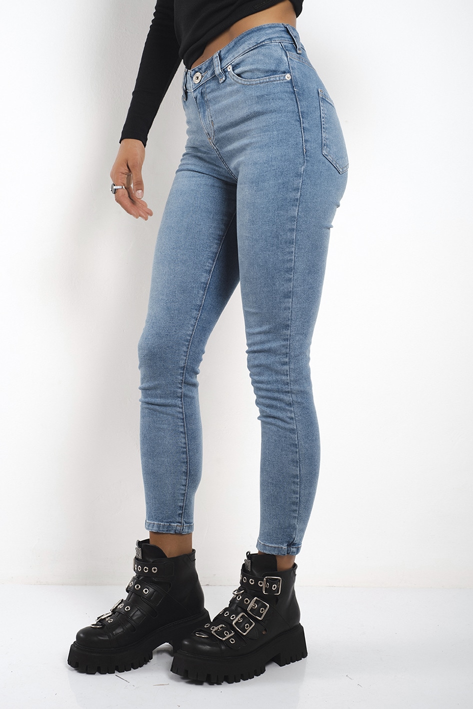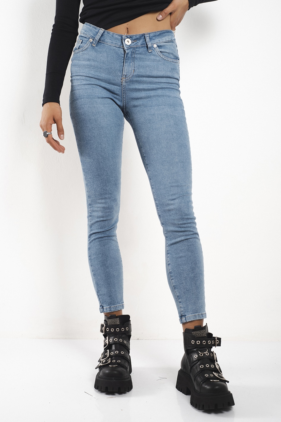 Jean super skinny tiro medio, confeccionado en Denim de algodón elastizado.