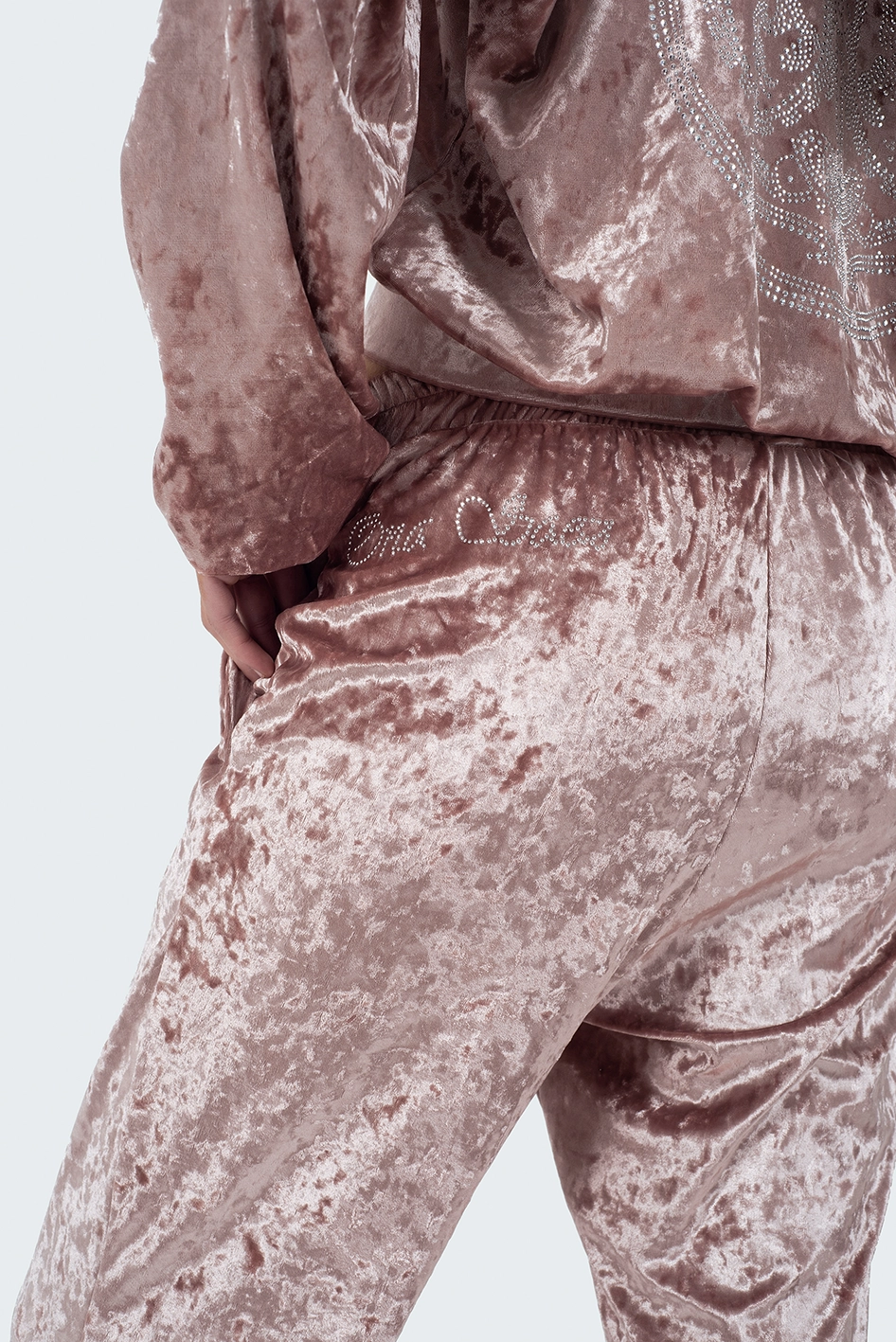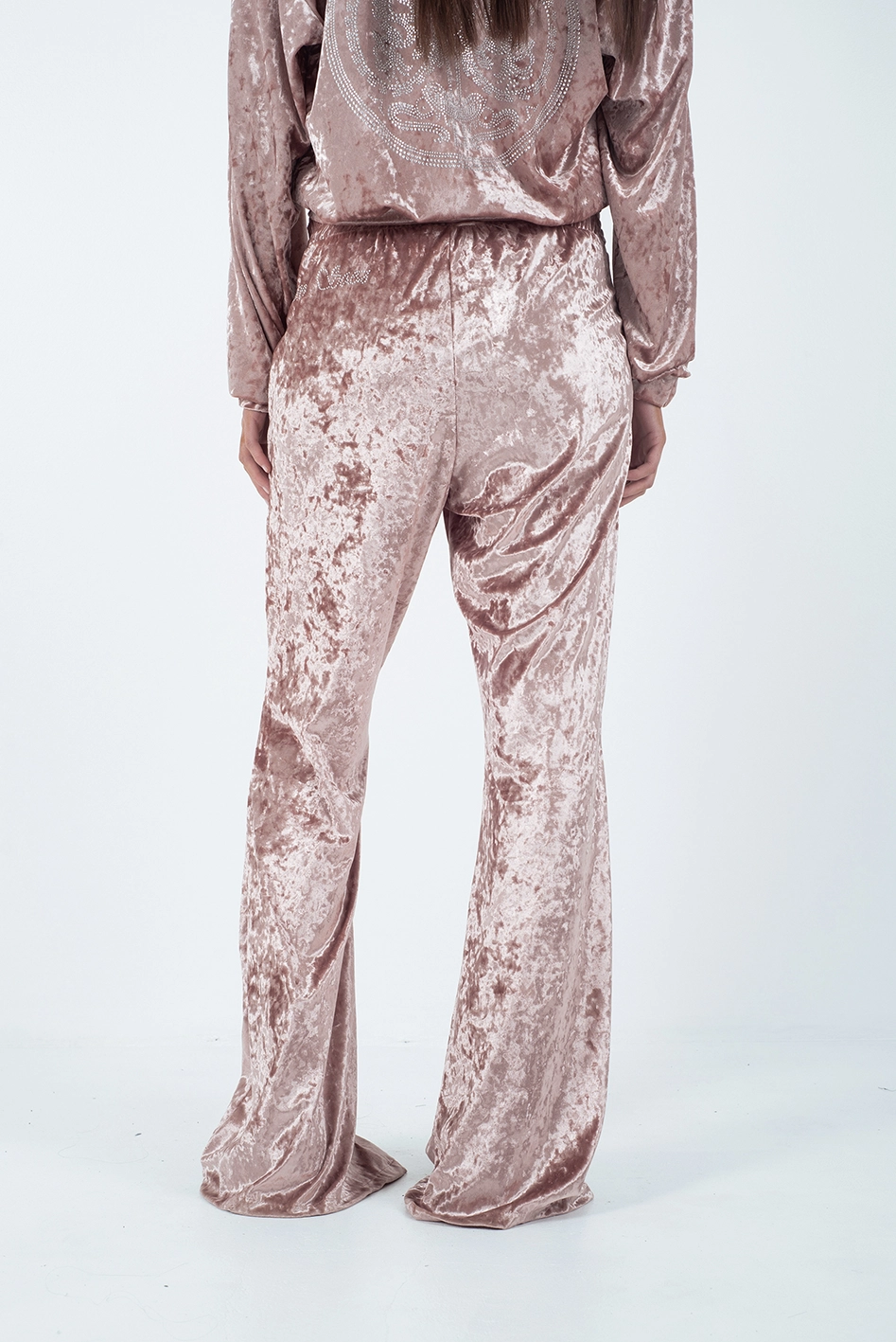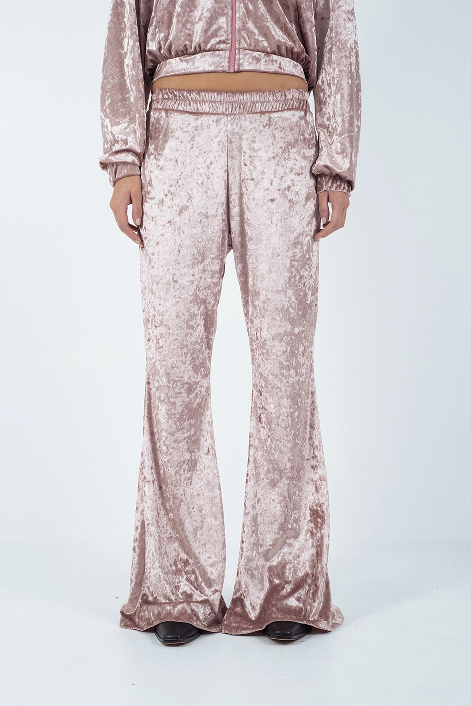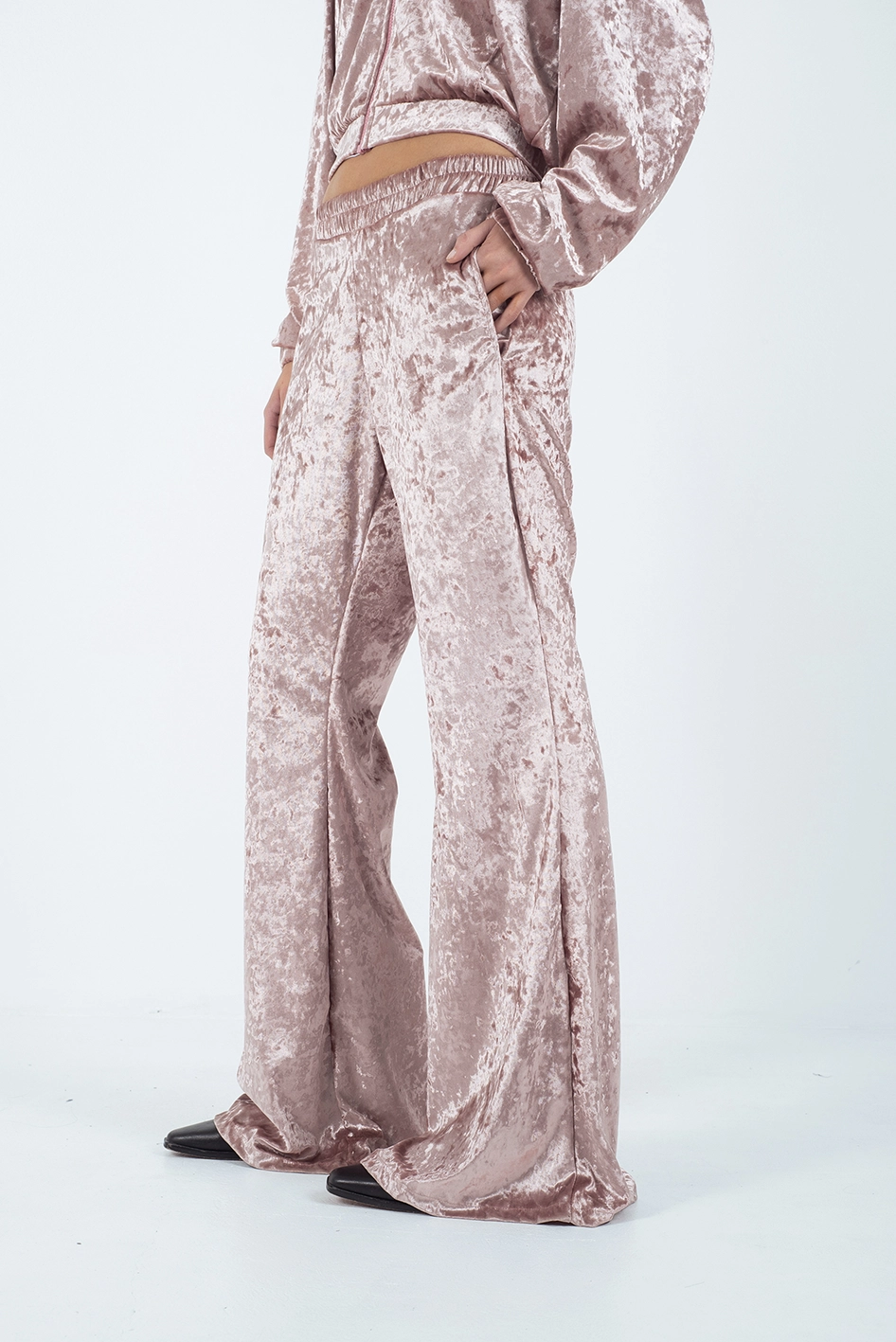 Pantalón confeccionado en chiffon aterciopelado de acabado brillante y tacto suave color Rosa.
