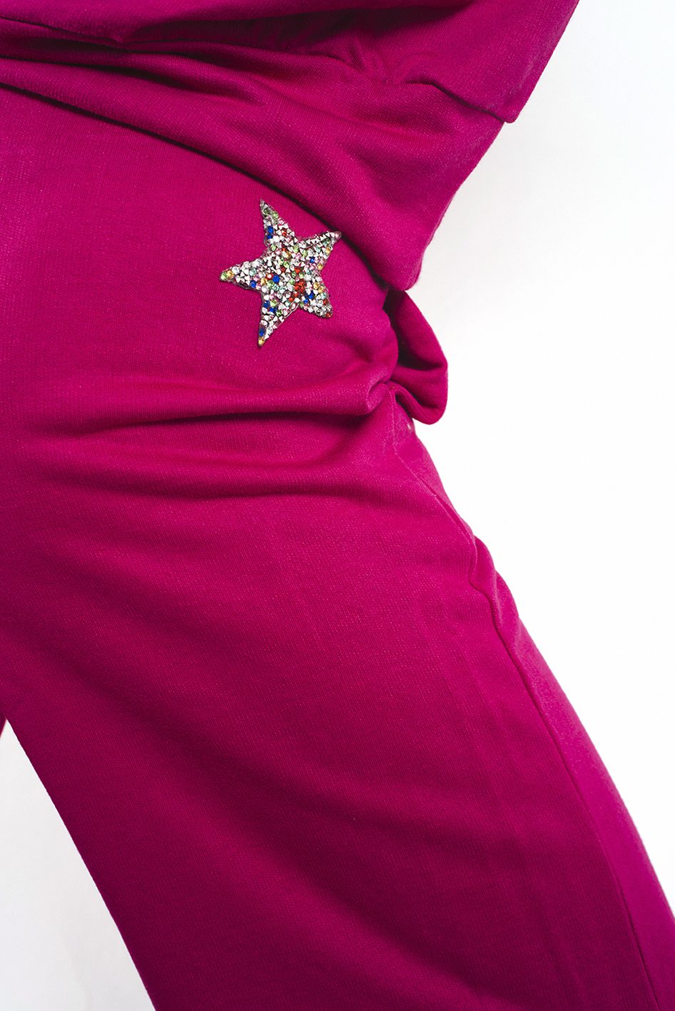 Detalle de aplique de estrella en canutillos multicolor.