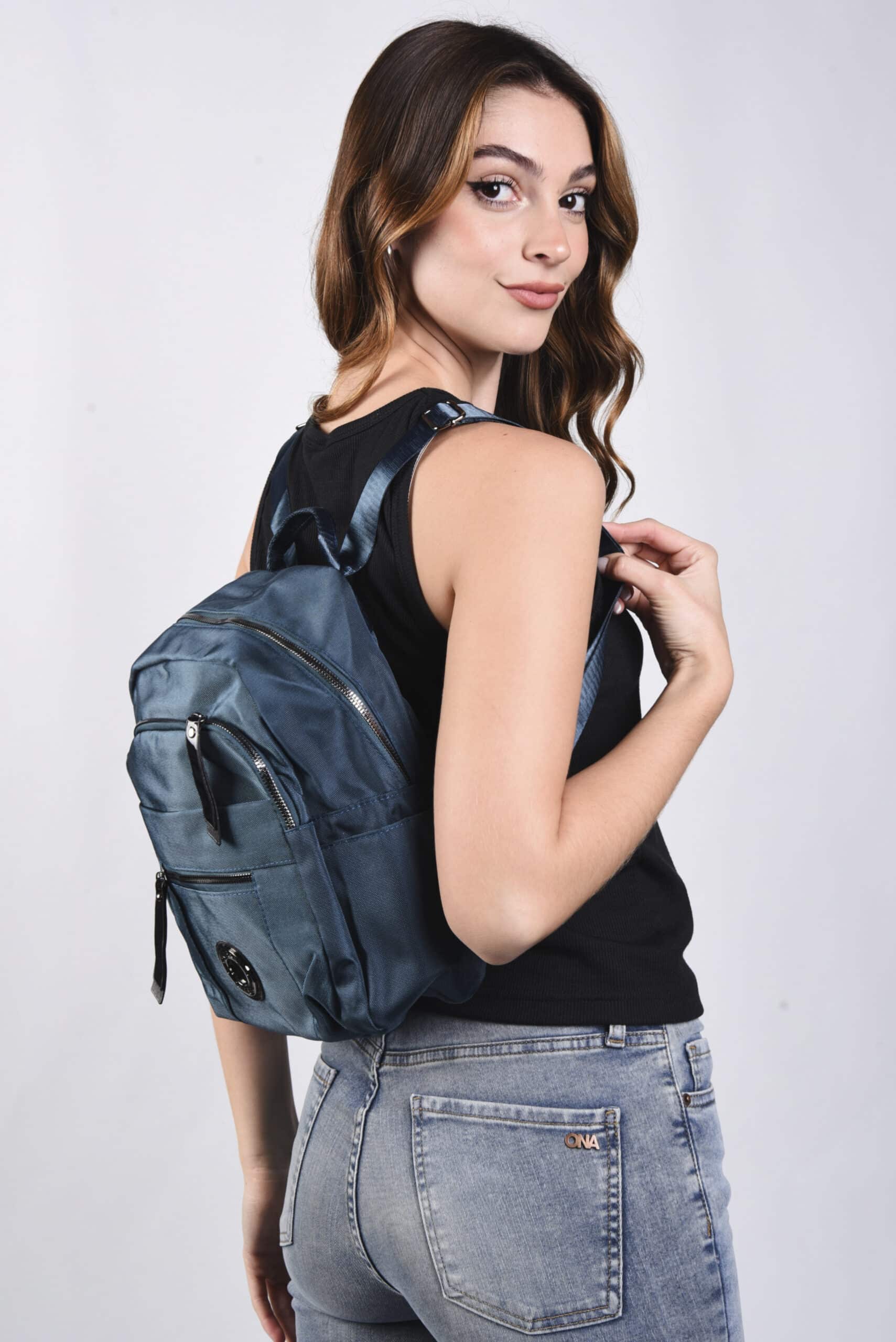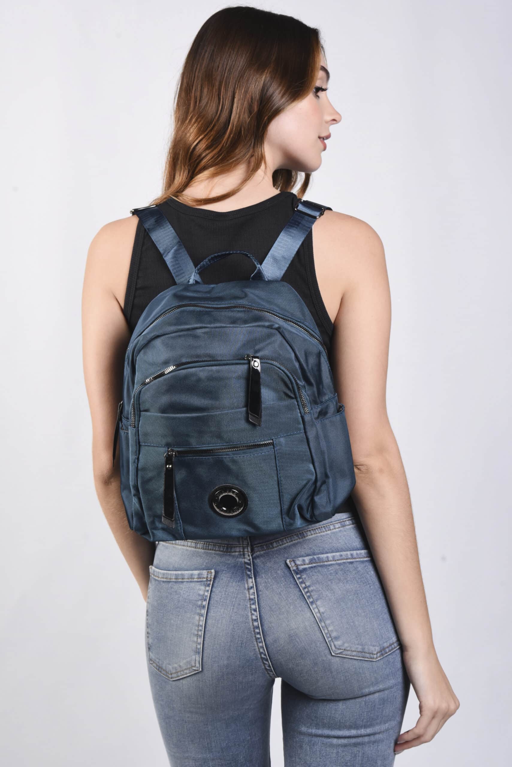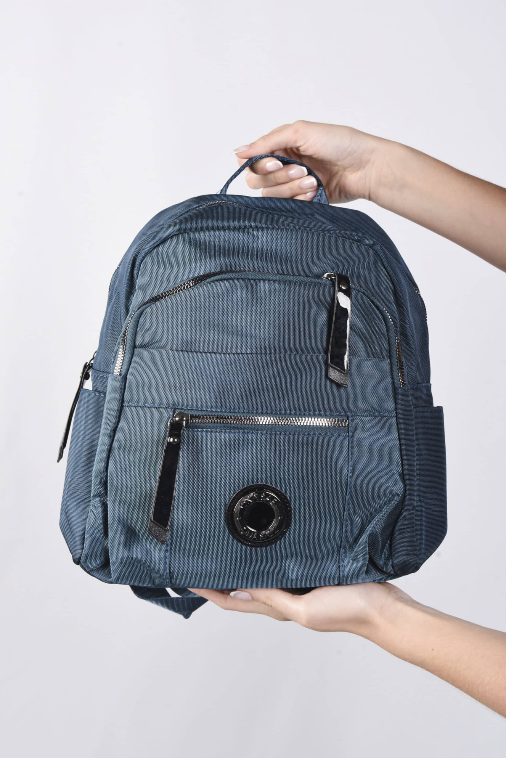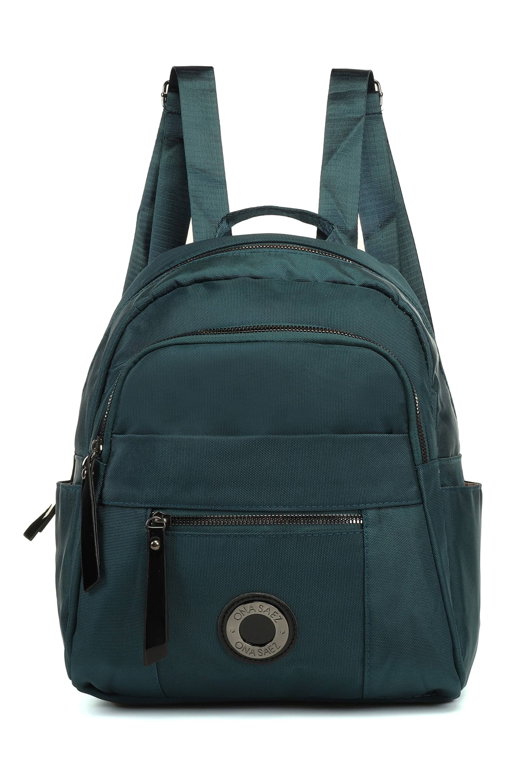 Mochila confeccionada en nylon 100% color verde, con logo de marca al frente,  ideal para quienes buscan un accesorio versátil para el día a día.