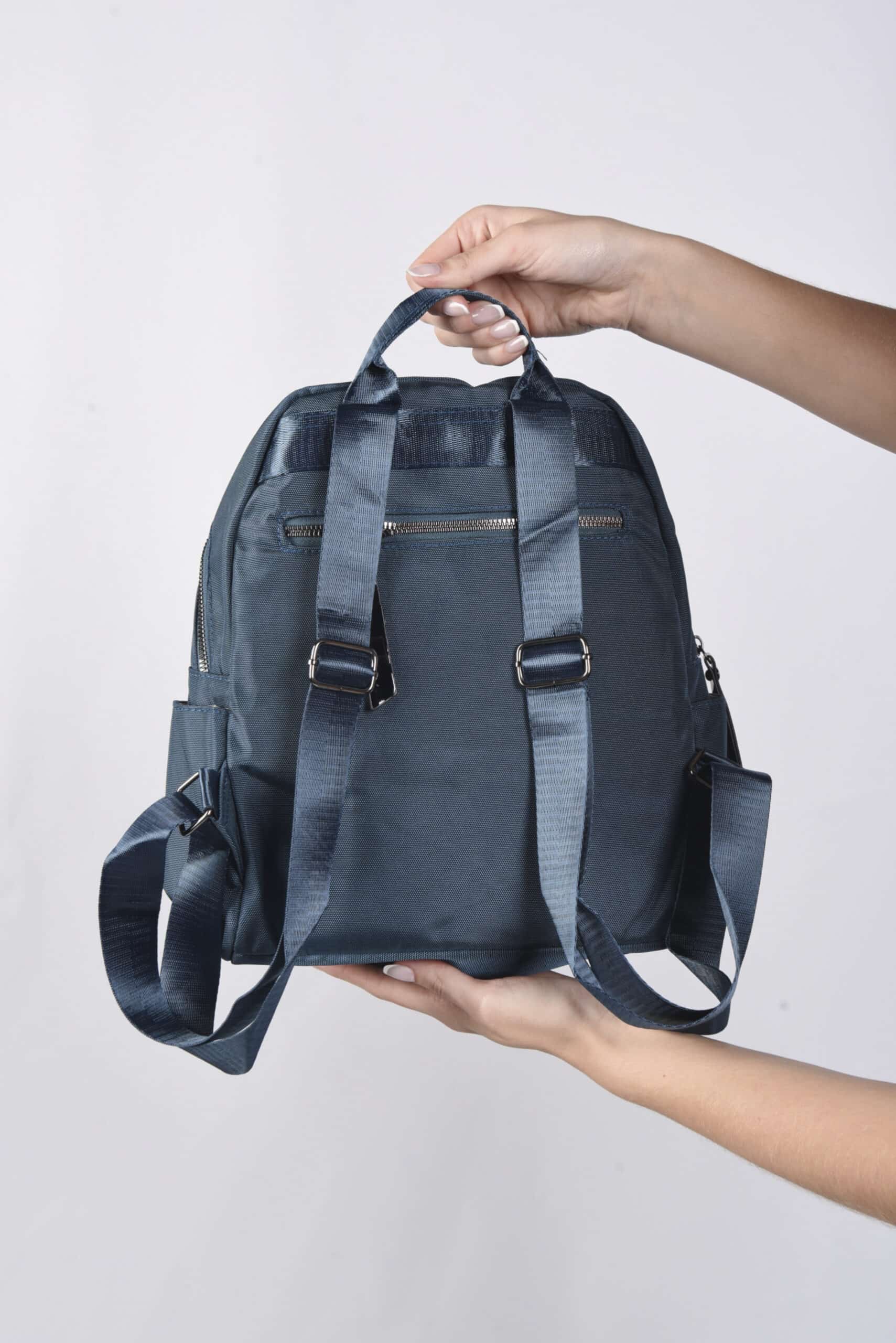 Cuenta con un compartimiento principal amplio y bolsillos frontales con cierre de cremallera que proporcionan un fácil acceso a tus pertenencias más importantes, como tu celular o llaves. además, las correas ajustables permiten adaptarla a tu medida, brindando comodidad durante todo el día.