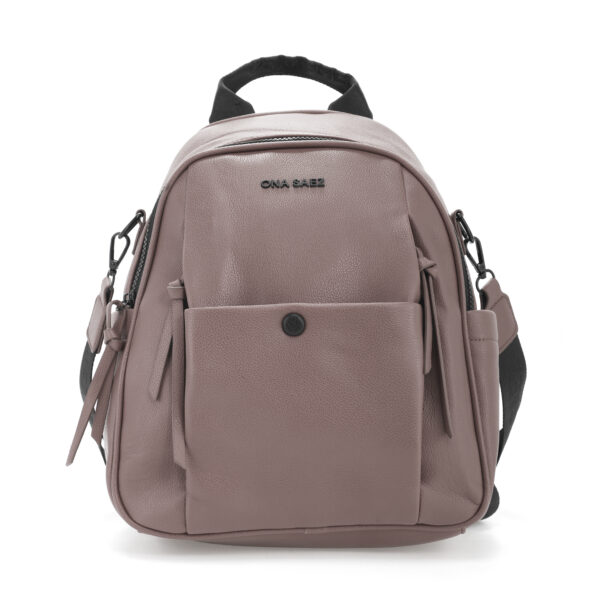 Mochila confeccionada en simil cuero (pu) color visón, combina líneas minimalistas con máxima funcionalidad. El bolsillo delantero de solapa con cierre imantado aporta un guiño de sofisticación, mientras que el compartimento interior con cremallera y los dos bolsillos laterales mantienen todo en su sitio.