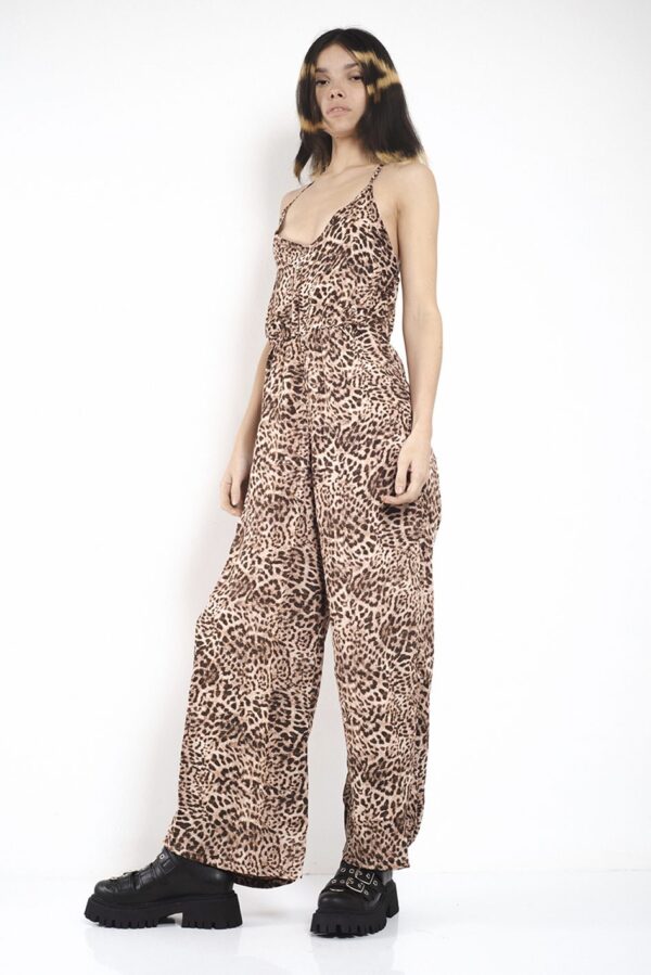 Mono largo escote en v de breteles finos, confeccionado en fibrana, estampado con un diseño exclusivo para ona saez.