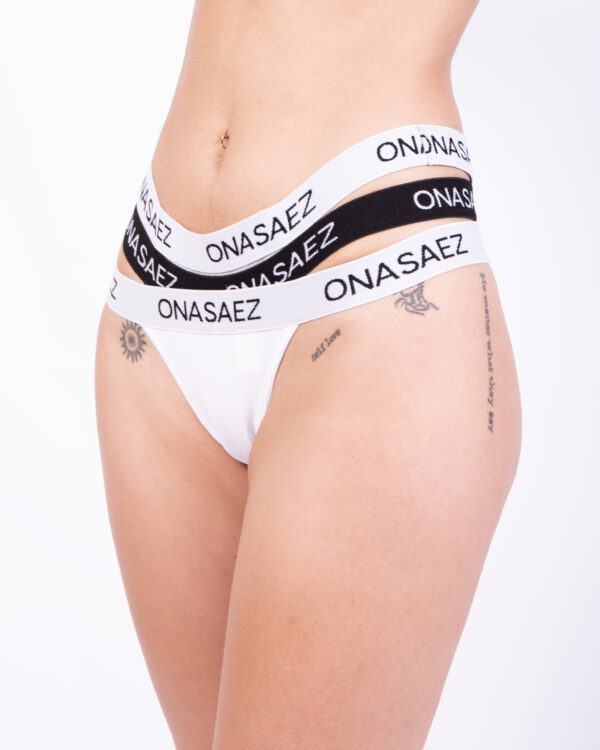 Pack de tanga, confeccionado en algodón con lycra, cintura elástica bordada con logo de marca.
