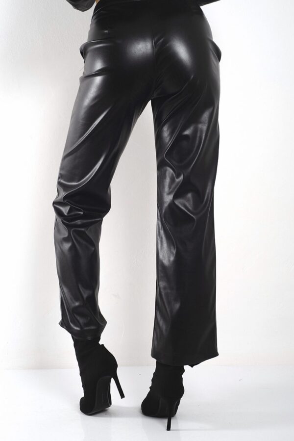 Pantalon sastrero tiro medio, confeccionado en jersey encuerado, simil leather