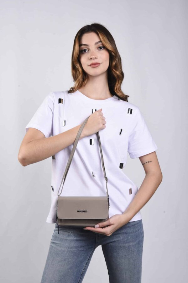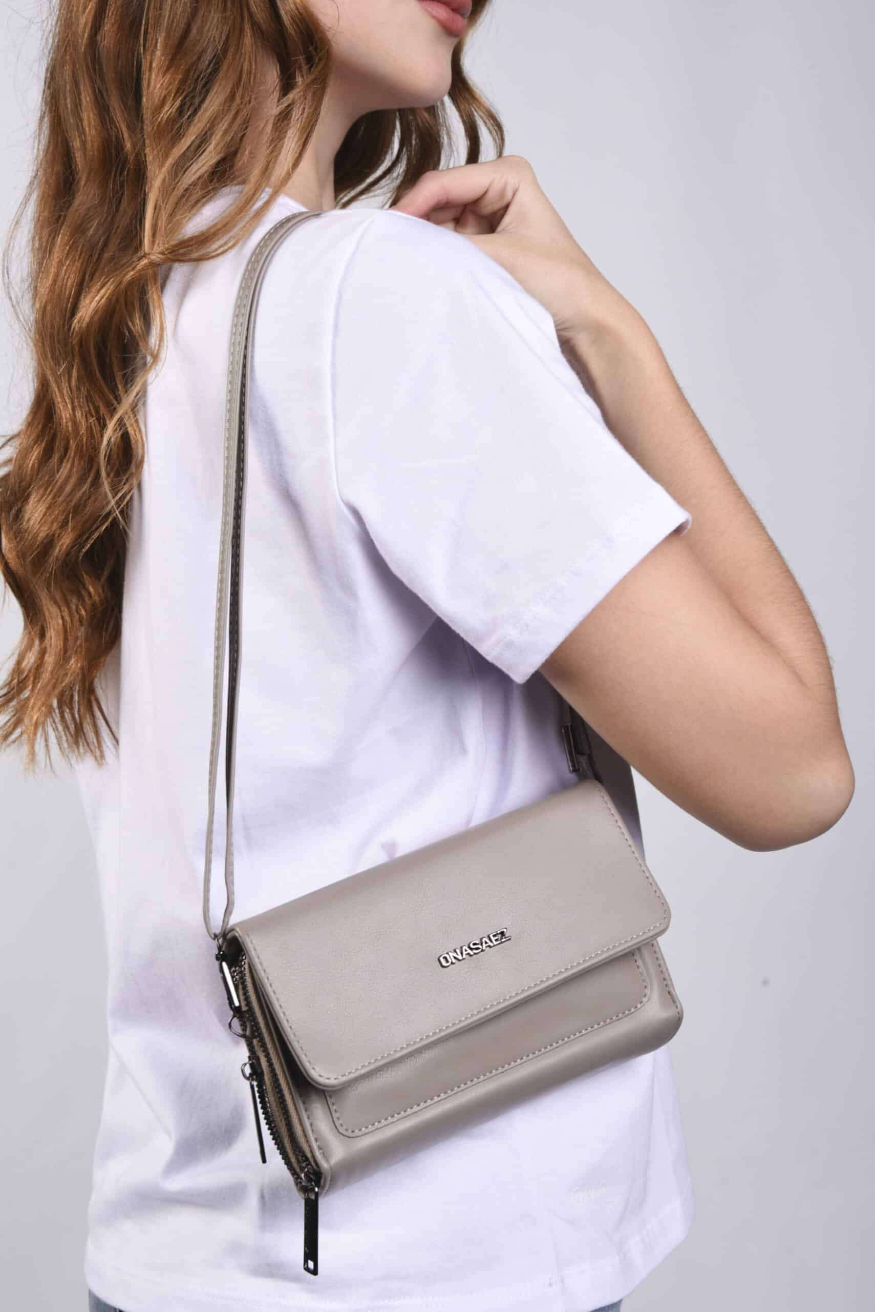 Doble compartimento interno que ofrece un espacio bien organizado para tus pertenencias esenciales, como tu billetera, celular y maquillaje. su tapa frontal asegura tus objetos con un sistema de cierre magnético, que mantiene un estilo limpio y sofisticado.