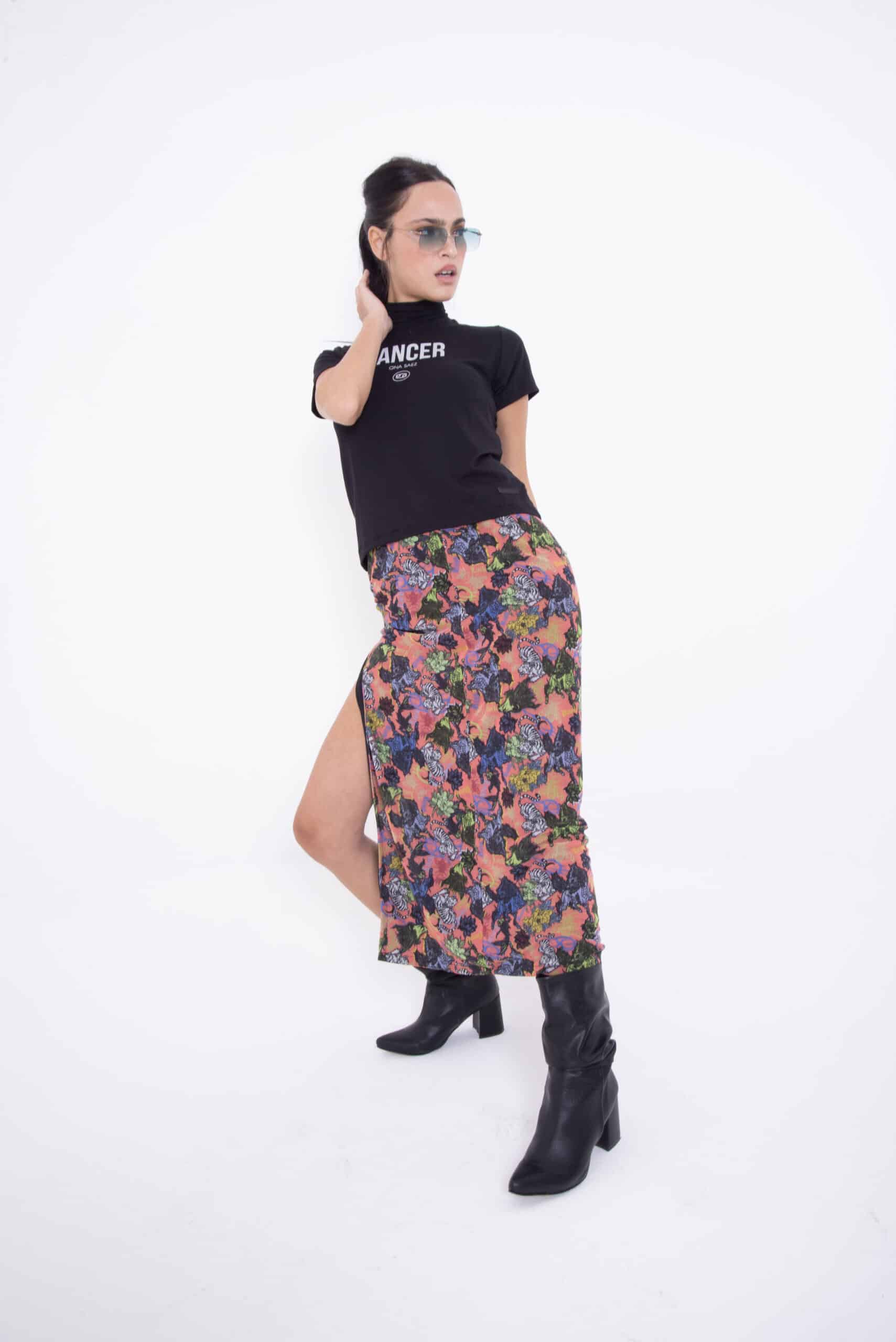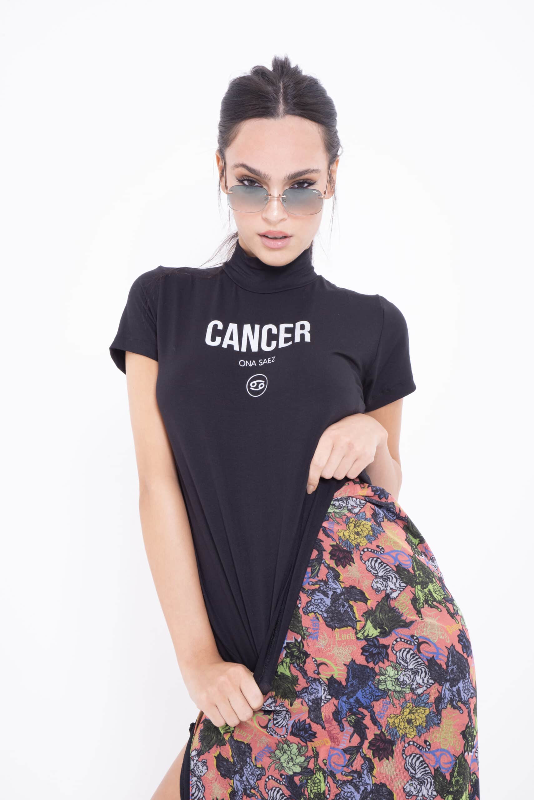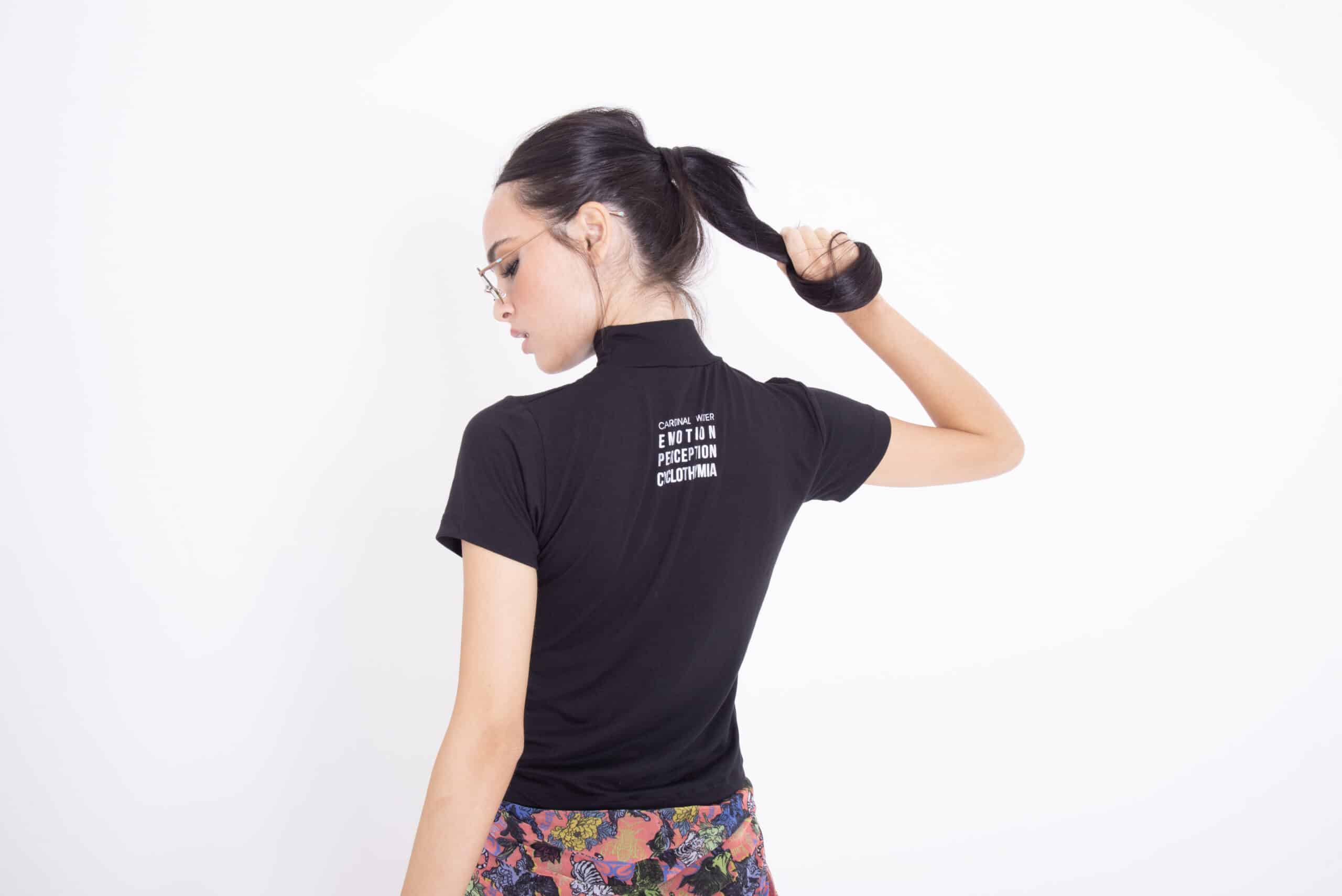 Remera con cuello media polera y manga corta, confeccionada en viscosa con lycra.