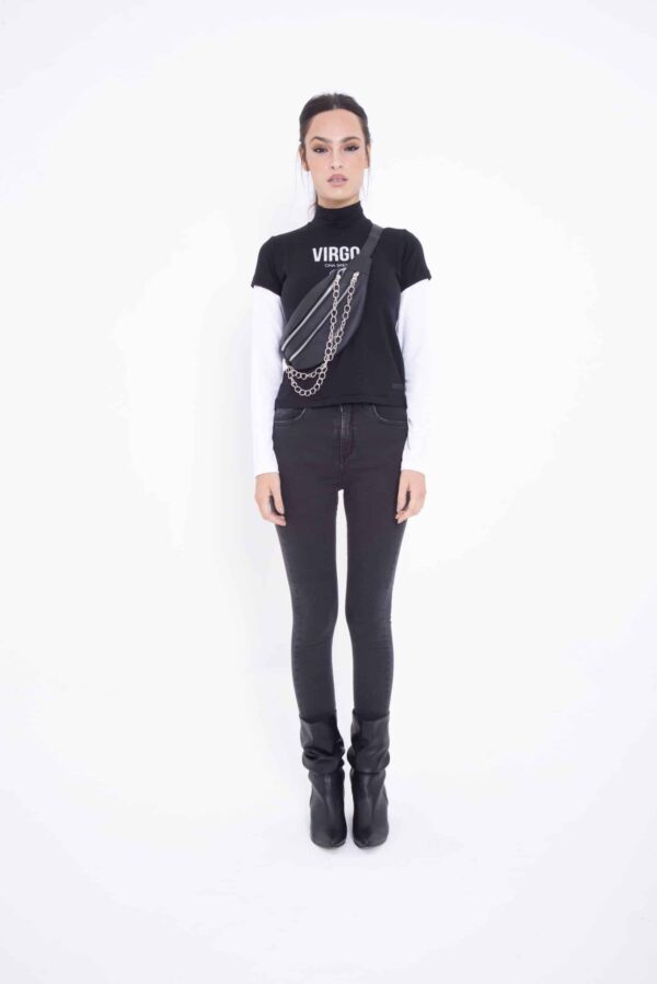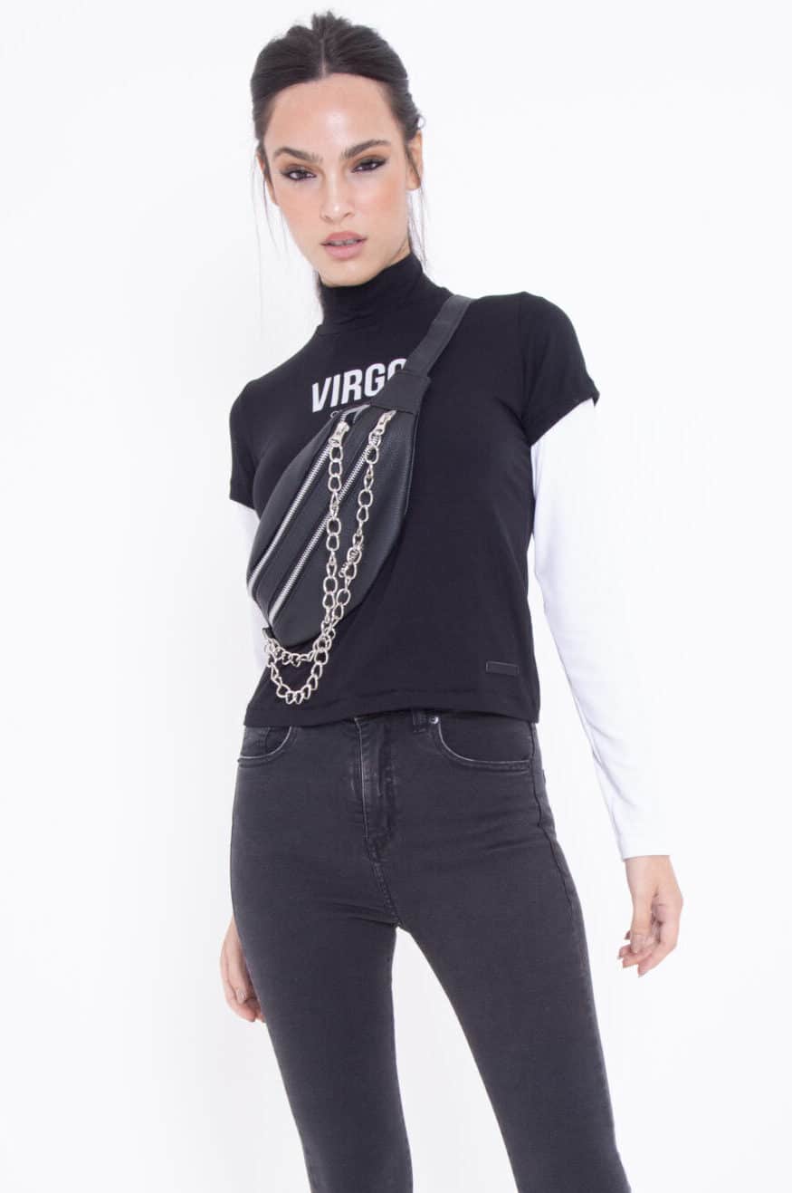 Remera con cuello media polera y manga corta, confeccionada en viscosa con lycra.