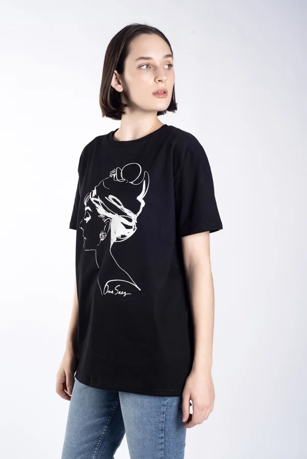 Confeccionada en algodón premium, esta remera blanca es el equilibrio perfecto entre arte y moda, ideal para quienes buscan una prenda versátil y sofisticada. el logo de Ona Saez firma el diseño, agregando un toque distintivo de la marca a esta pieza de colección.