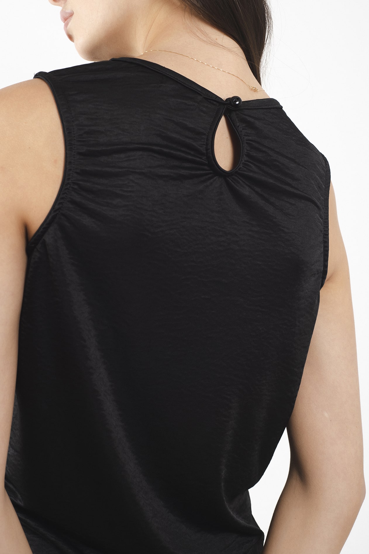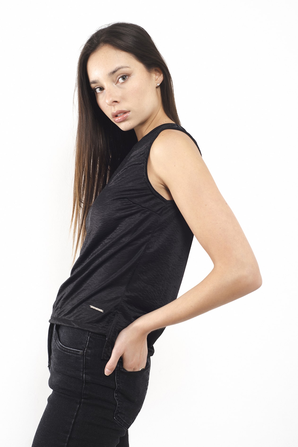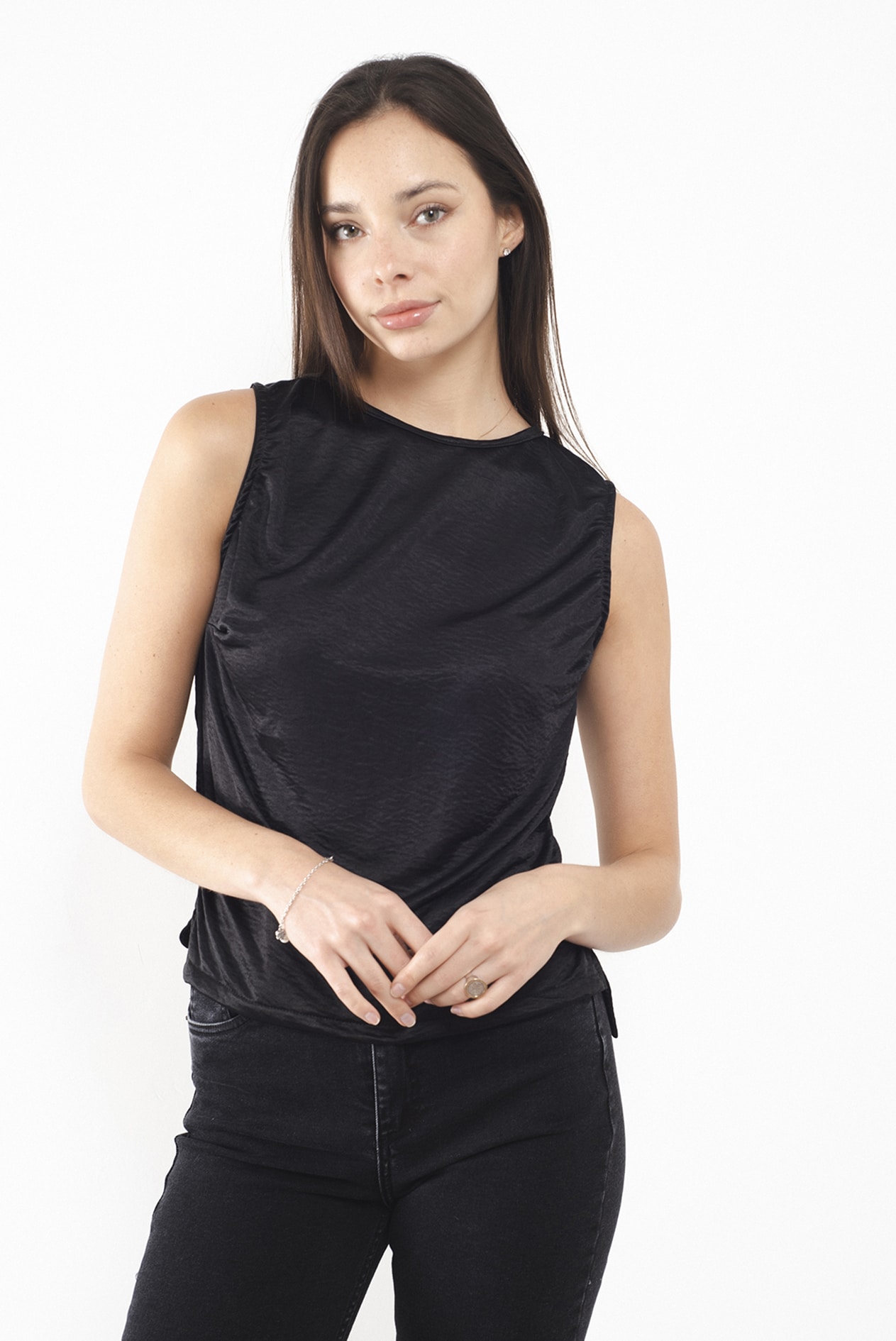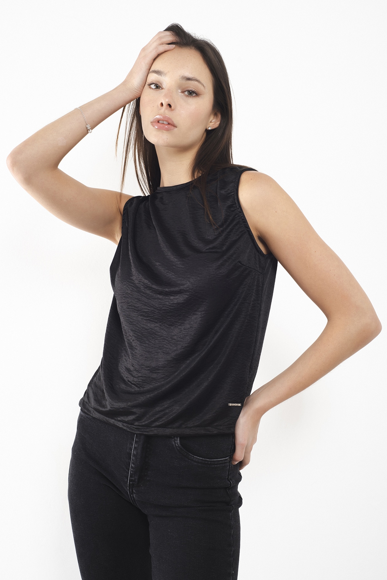 Remera sin mangas confeccionada en jersey con lycra brillante