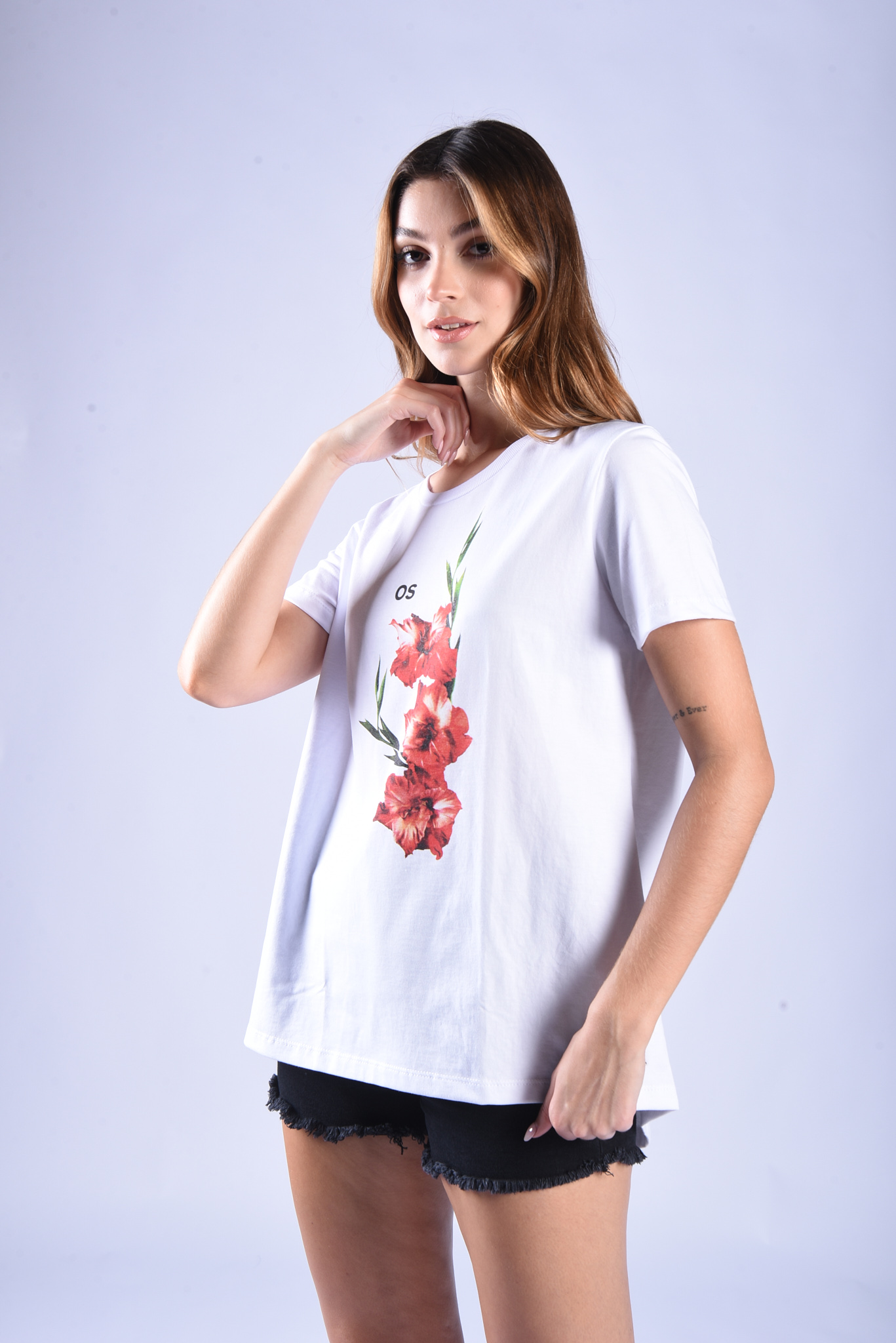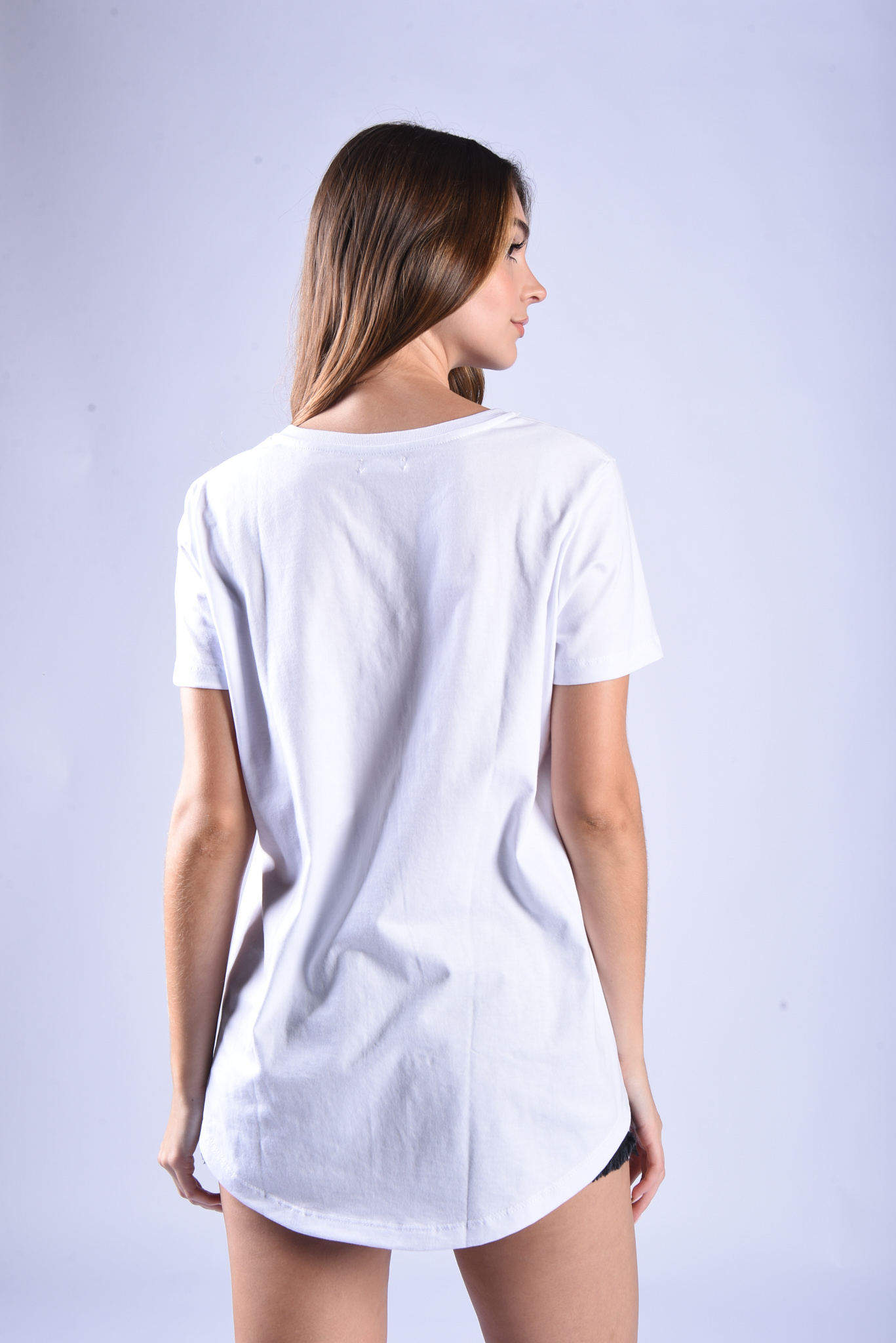 Remera calce regular, manga corta y cuello redondo, confeccionada en 100% algodón.