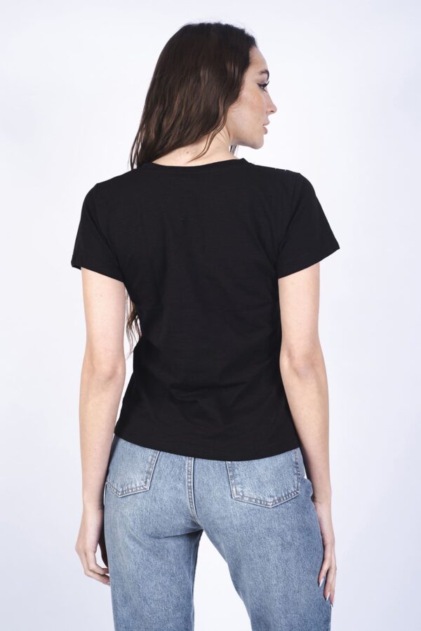 Remera cuello redondo y manga corta, confeccionada en 100% algodón color negra.