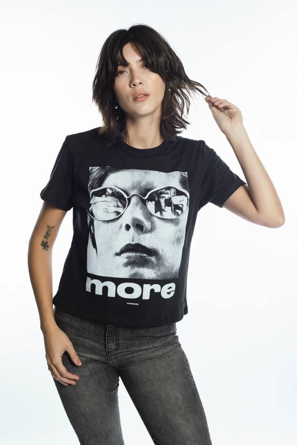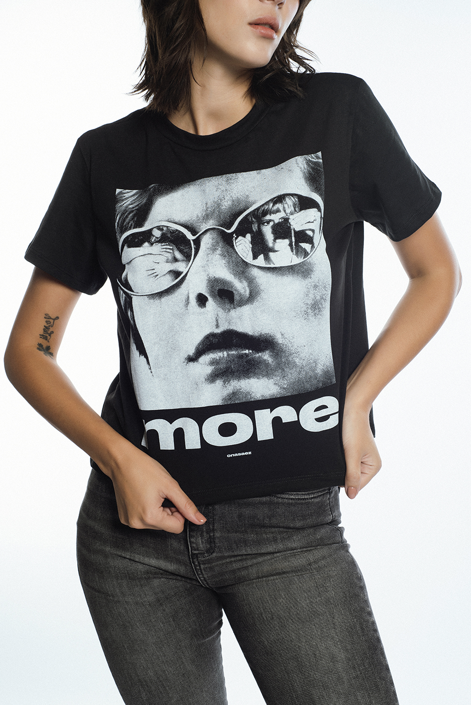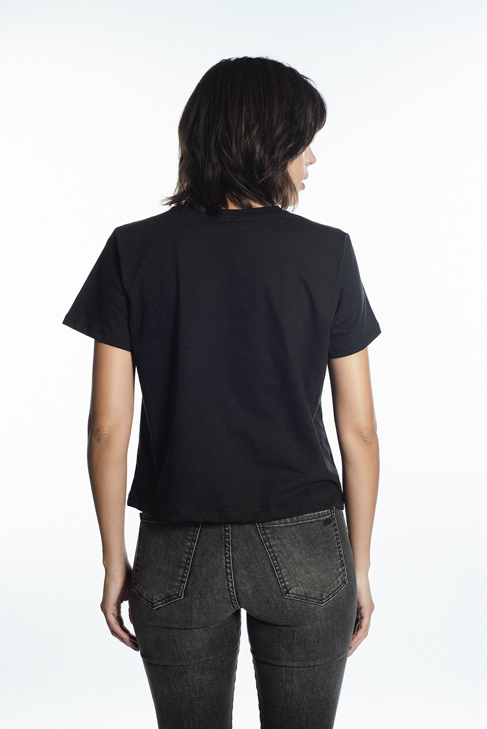 Larga por encima de la cadera, con estampa a contra tono centralizada en el frente.