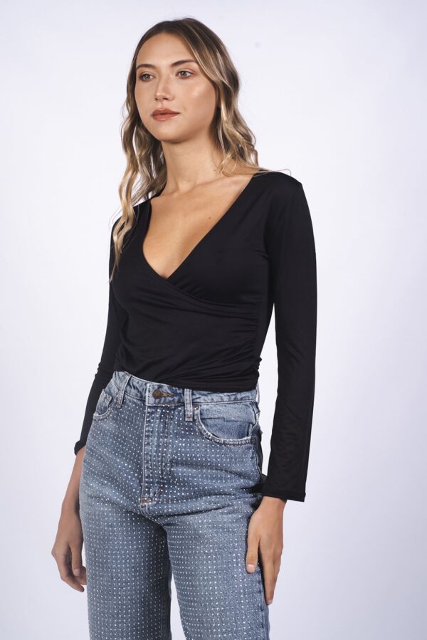 Remera manga larga escote en v , confeccionada en microfibra elastizada.